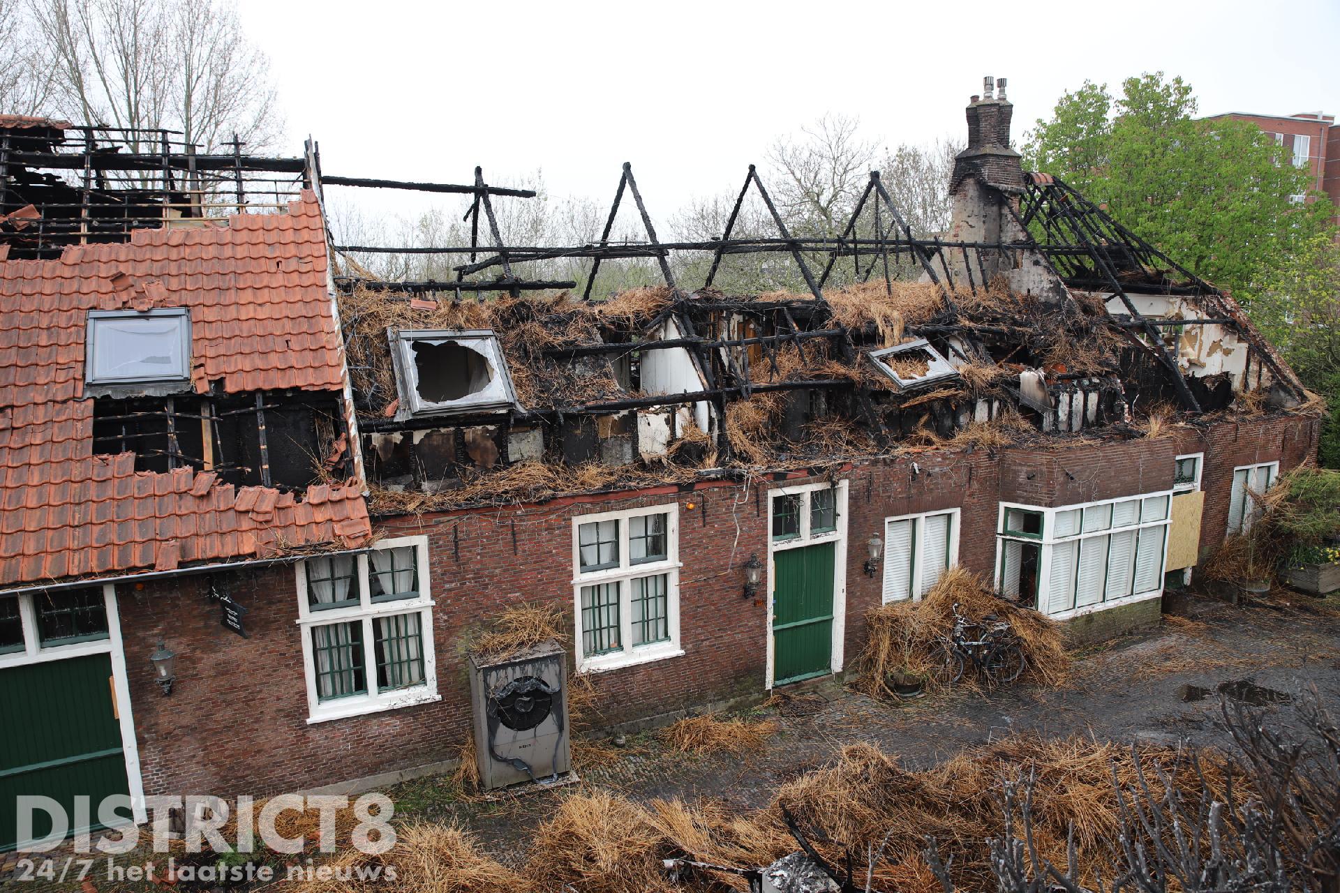 Zoetermeer – In de ochtend na de zeer grote brand in een boerderij aan de Rokkeveenseweg in Zoetermeer is de enorme schade goed zichtbaar. In de nacht van zondag op maandag 17 april ontstond rond 00:45 brand in een camper, de brand sloeg razendsnel om zich heen waardoor ook het rietendak van de boerderij in brand vloog.