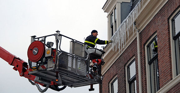 Den Haag – Woensdagmiddag 23 janurari werd de hulp van de brandweer ingeroepen, deze keer ging het niet om een grote ijspegel te verwijderen, maar om sneeuw in combinatie met ijs wat over de rand van het dak hing wat tot gevaarlijke situaties kon zorgen. De brandweer heeft met de hoogwerker het sneeuw/ijs veilig van de rand van de dak verwijderd waarna alles weer helemaal veilig was.