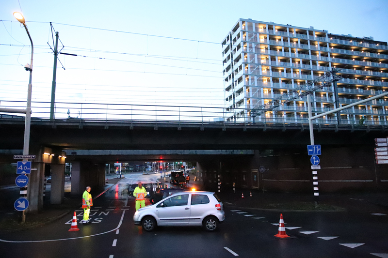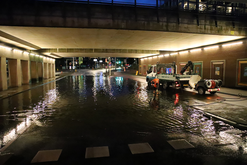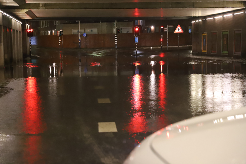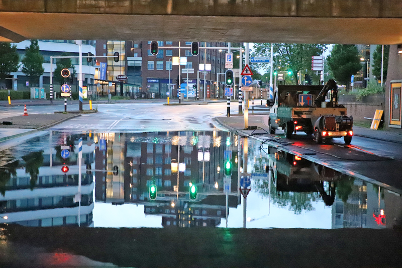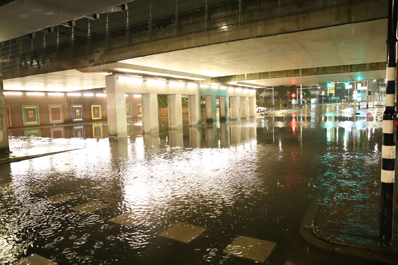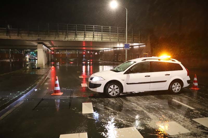 Maar ook op de weg was de zware regenval goed zichtbaar. Zo liep viaduct De Put bij de Vaillantlaan in Den Haag vol. Het was zelfs zo erg dat de weg moest worden afgesloten.