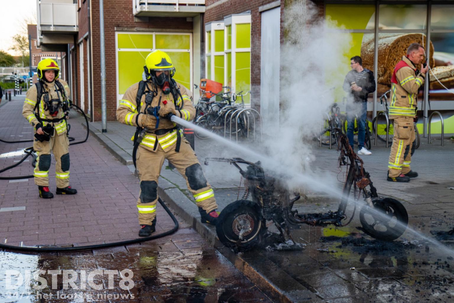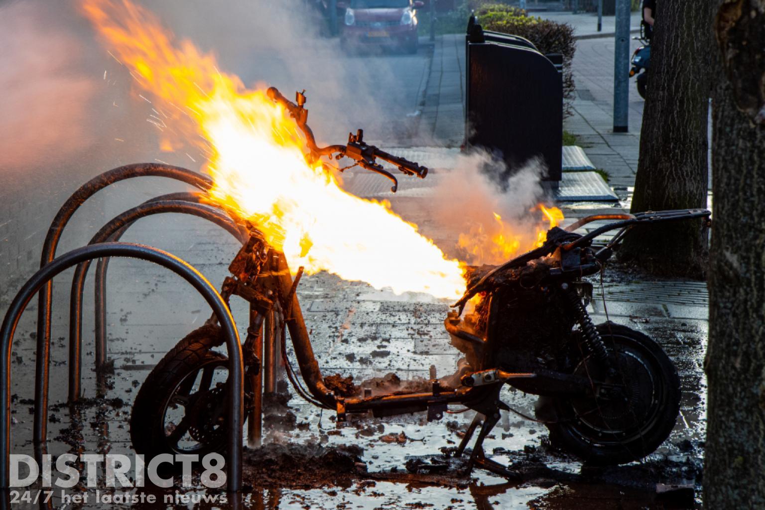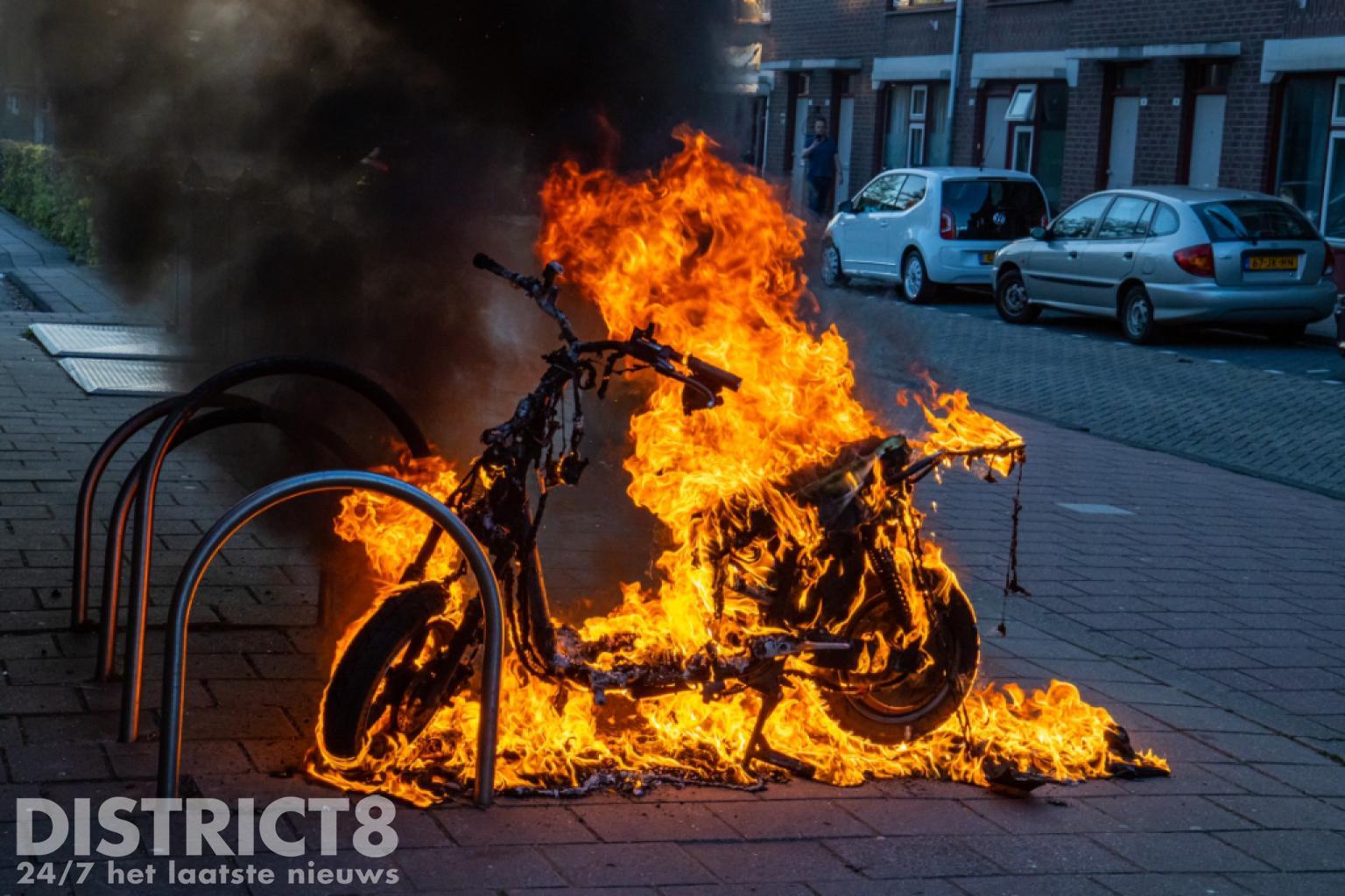 Vermoedelijk gaat het om dezelfde scooter waarmee een paar uur eerder ook op het Geuzenplein een ongeval had plaatsgevonden. Toen de brandweer aankwam stond het voertuig al volledig in brand en was er geen redden meer aan.