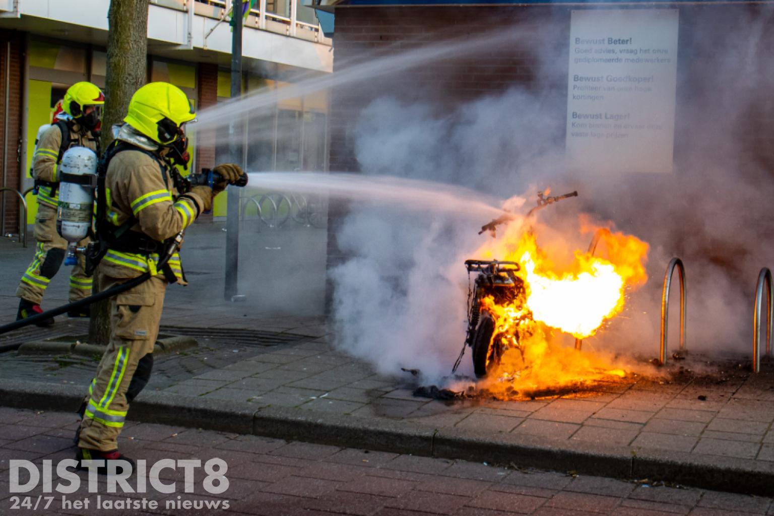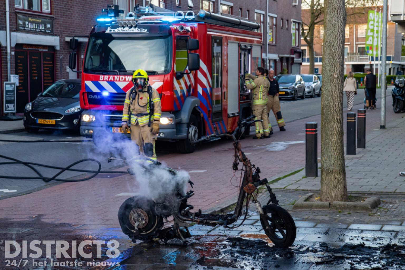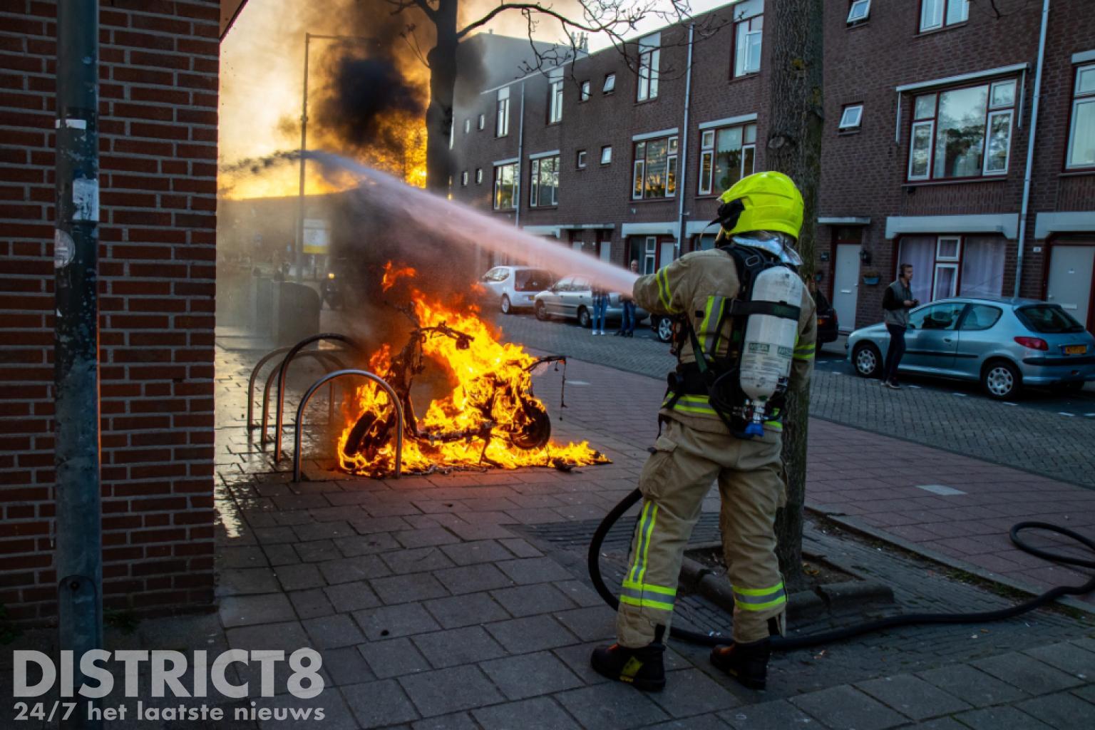 Vermoedelijk gaat het om dezelfde scooter waarmee een paar uur eerder ook op het Geuzenplein een ongeval had plaatsgevonden. Toen de brandweer aankwam stond het voertuig al volledig in brand en was er geen redden meer aan.
