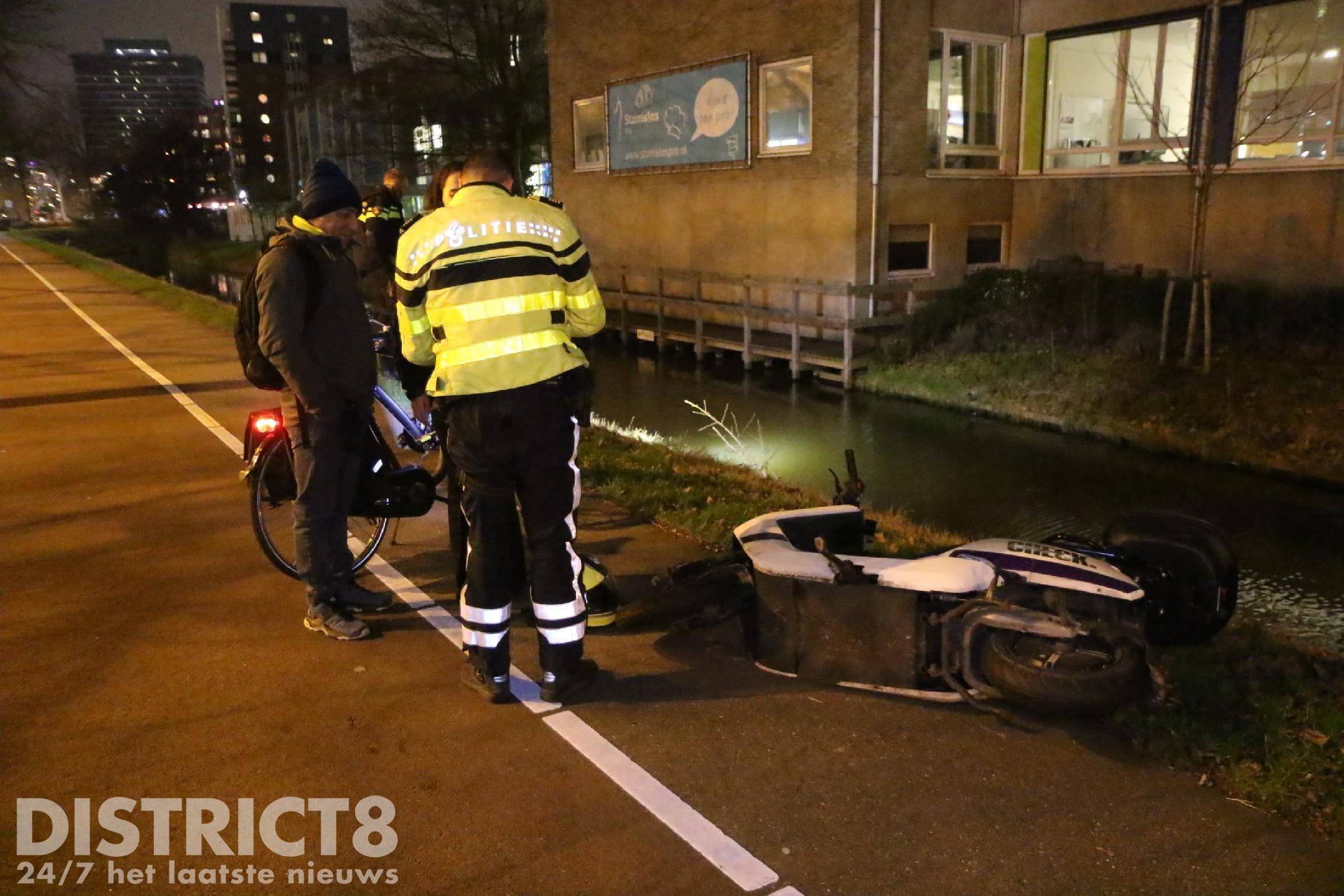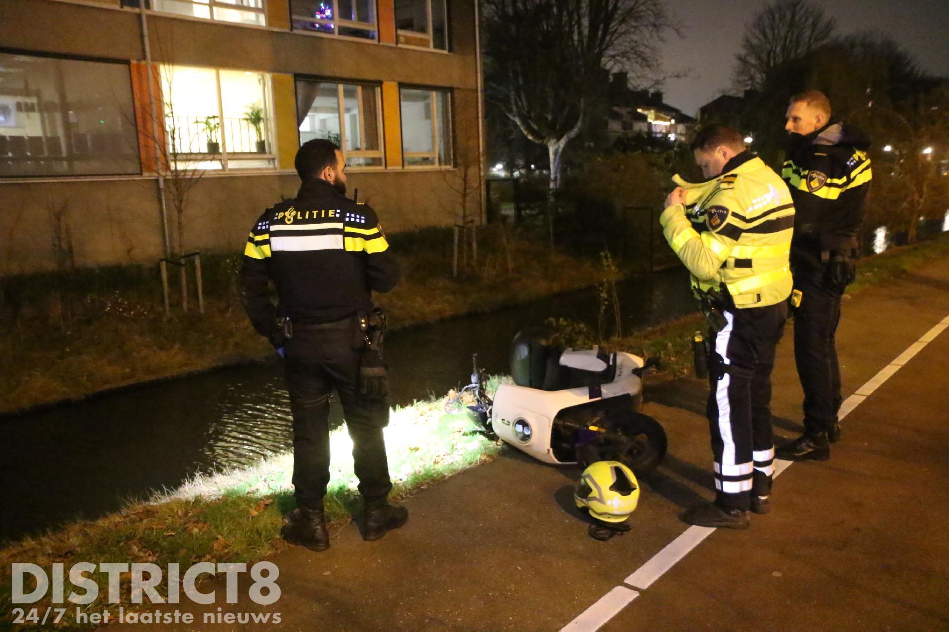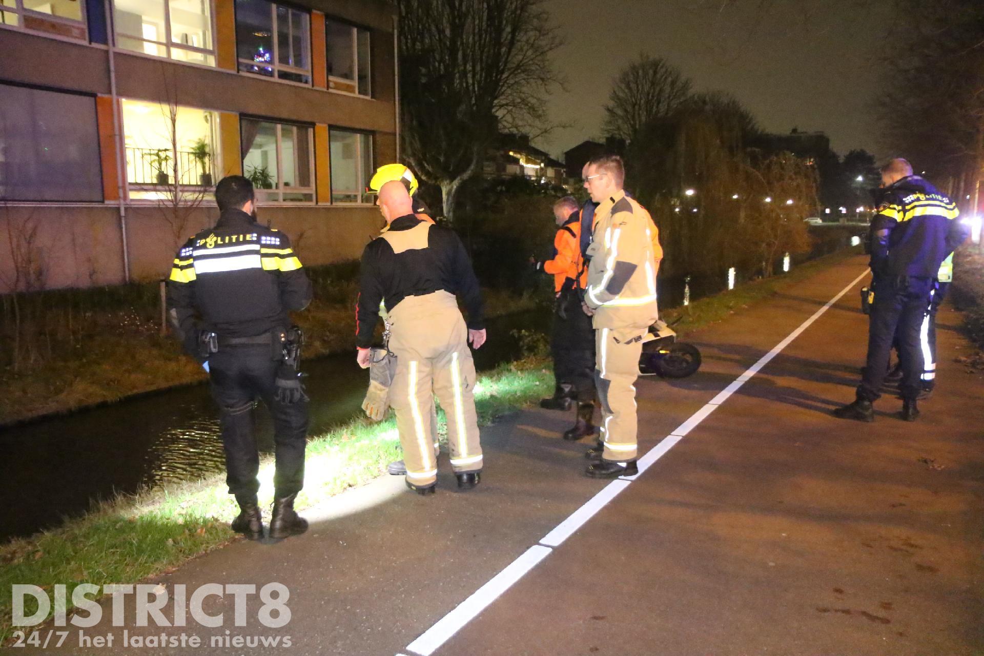 Toen duidelijk werd dat de scooter er al sinds vanmiddag lag, werd besloten om niet in het water te gaan zoeken. De hulpdiensten gingen hierop weer retour.