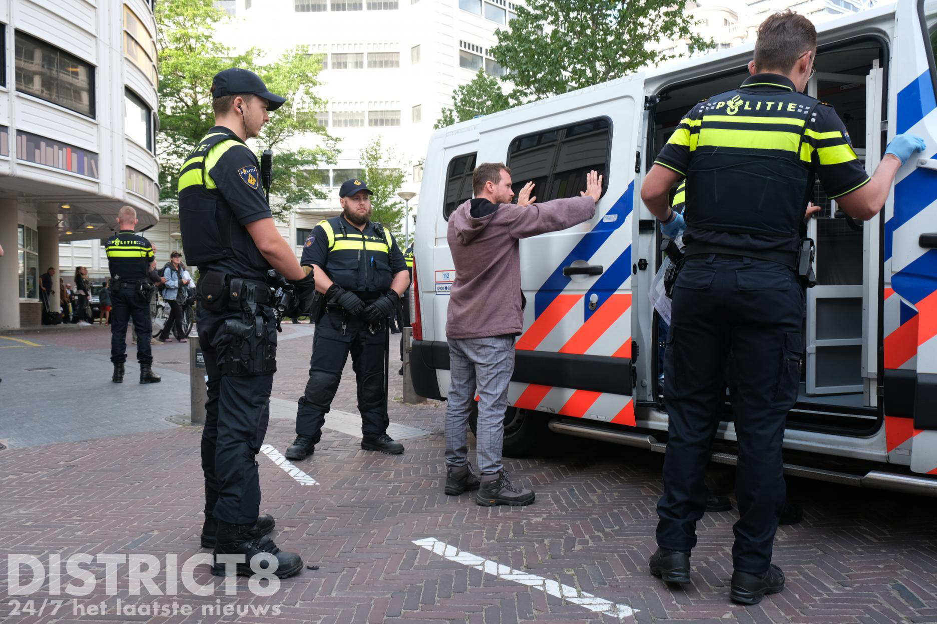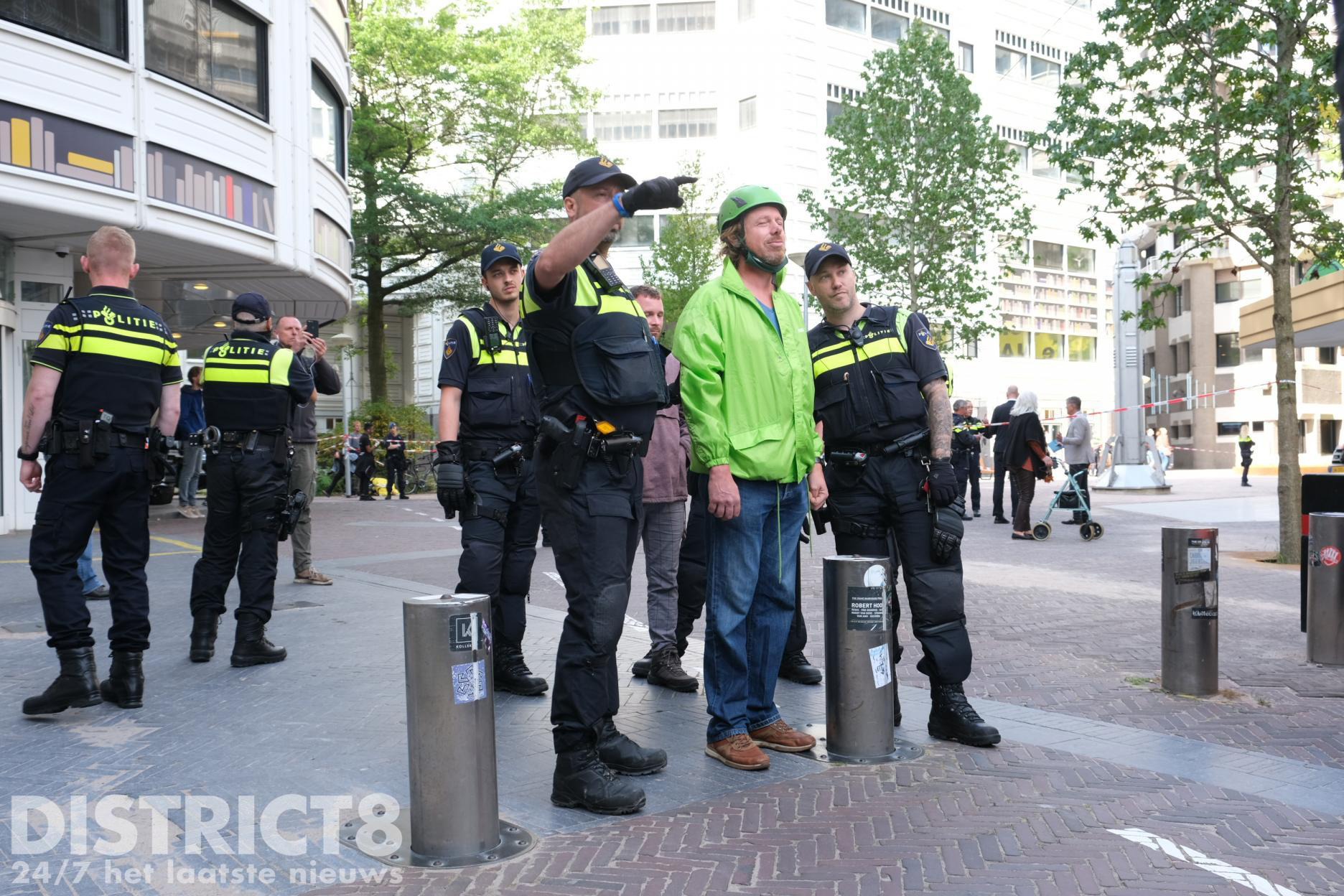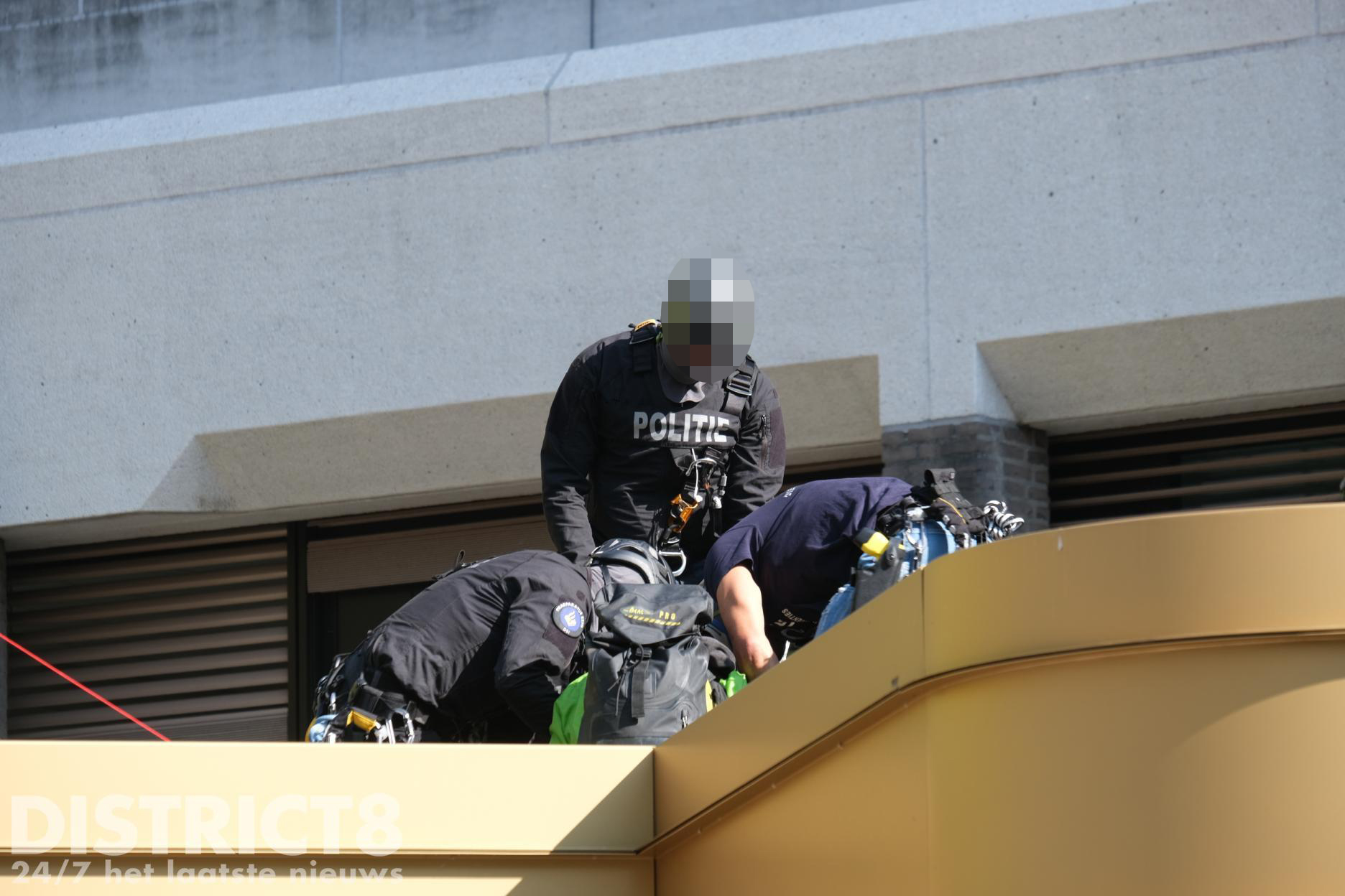 Inmiddels zijn agenten en leden van de Dienst Speciale Interventies het dak op gegaan en hebben de demonstranten aangehouden.