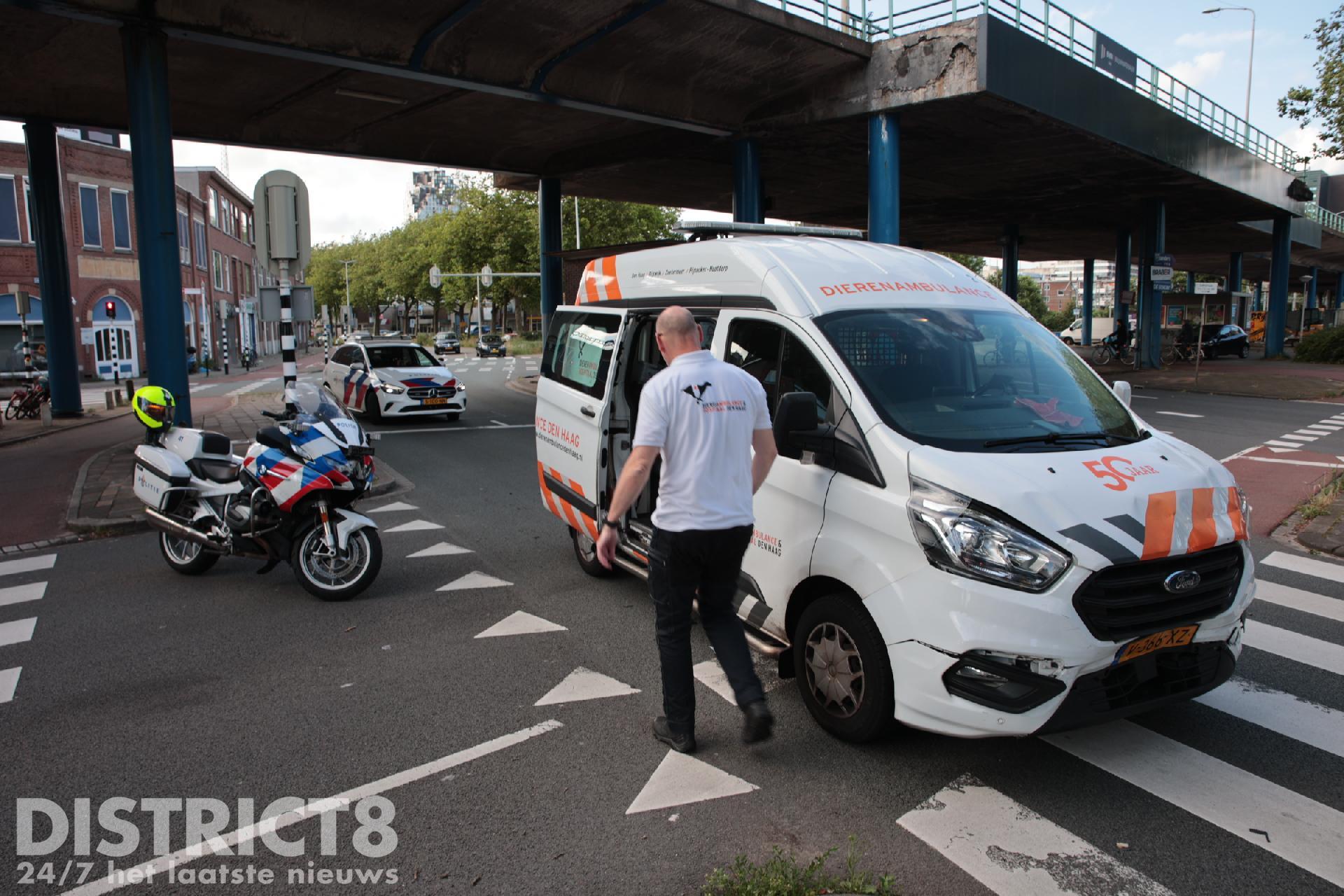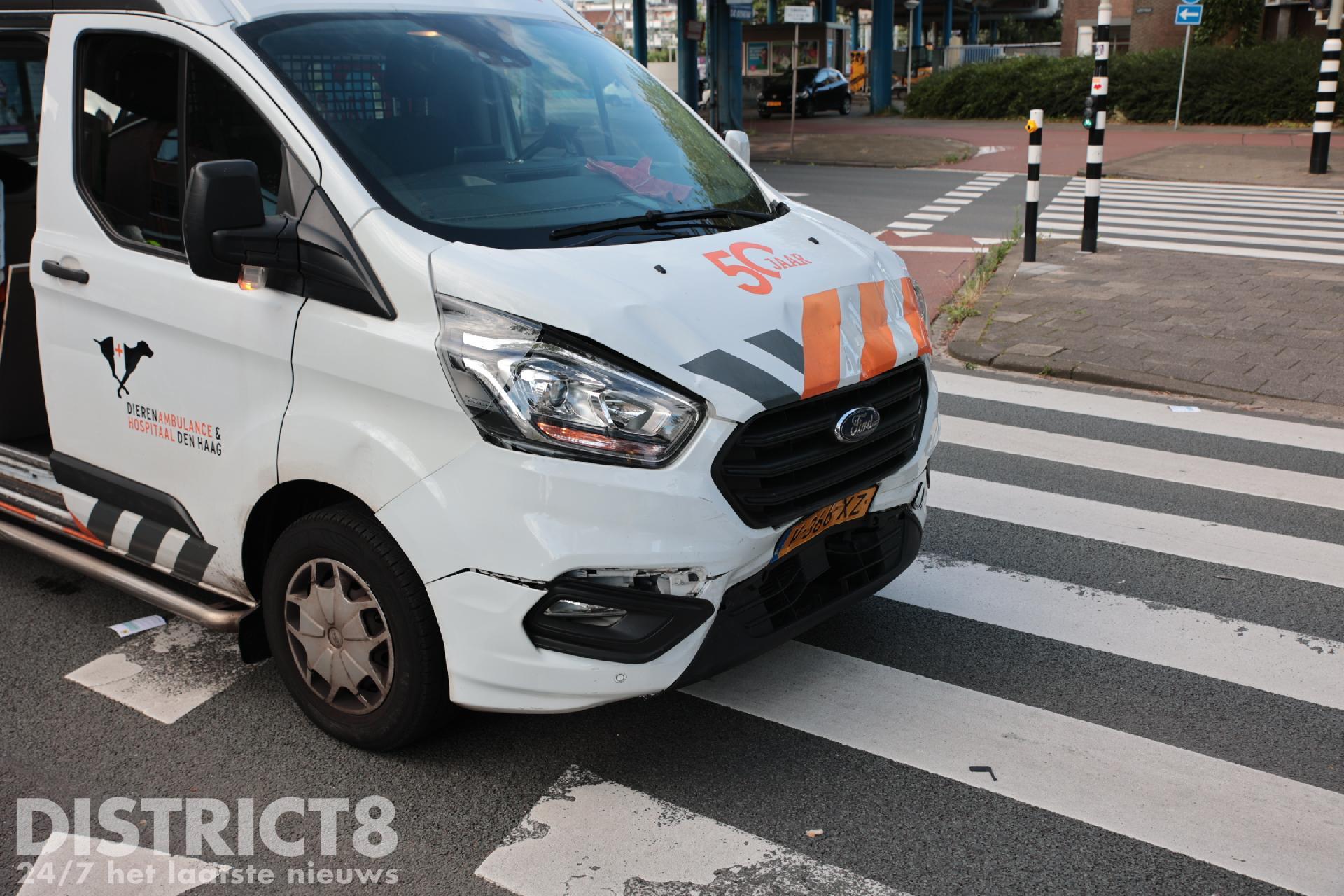 Den Haag – Zaterdagavond 6 juli heeft er een kop-staartbotsing plaatsgevonden tussen een dierenambulance en een personenauto op de Binckhorstlaan kruising Weteringkade in Den Haag.