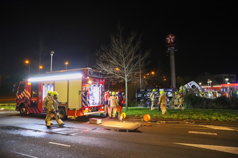 De vrachtwagen raakte zwaarbeschadigd en de chauffeur kwam bekneld te zitten. De hulpdiensten schaalden snel op naar grote hulpverlening GRIP 1. Meerdere ambulances uit diverse regio’s werden ter plaatse gestuurd en tevens ook het traumateam. Voor een persoon kwam alle hulp te laat, hij overleed ter plaatse aan zijn verwondingen.