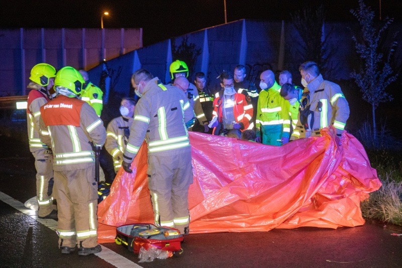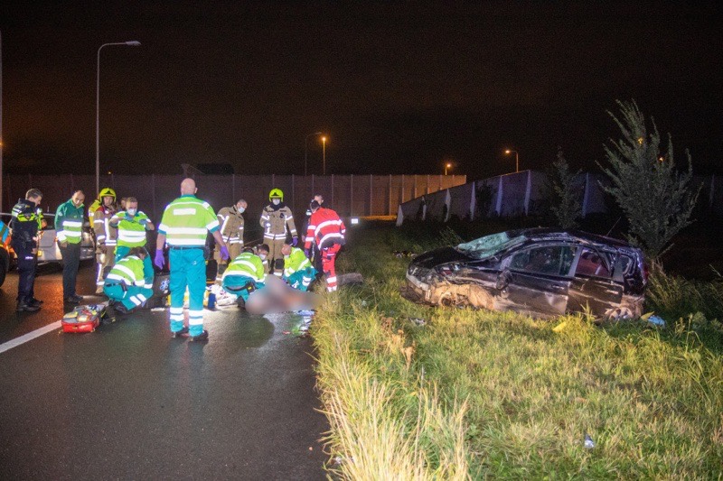Schiedam – Op de toerit naar de A20 richting Rotterdam is in de nacht van zondag op maandag een auto meermalen over de kop geslagen. Eén inzittende moest worden gereanimeerd, twee personen zijn gewond geraakt.