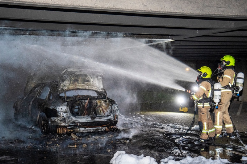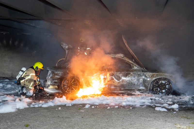 De brandweer had enige moeite om de brand te blussen omdat er veel brandbare vloeistoffen aanwezig waren. De politie heeft bij de aangetroffen auto een onderzoek ingesteld.