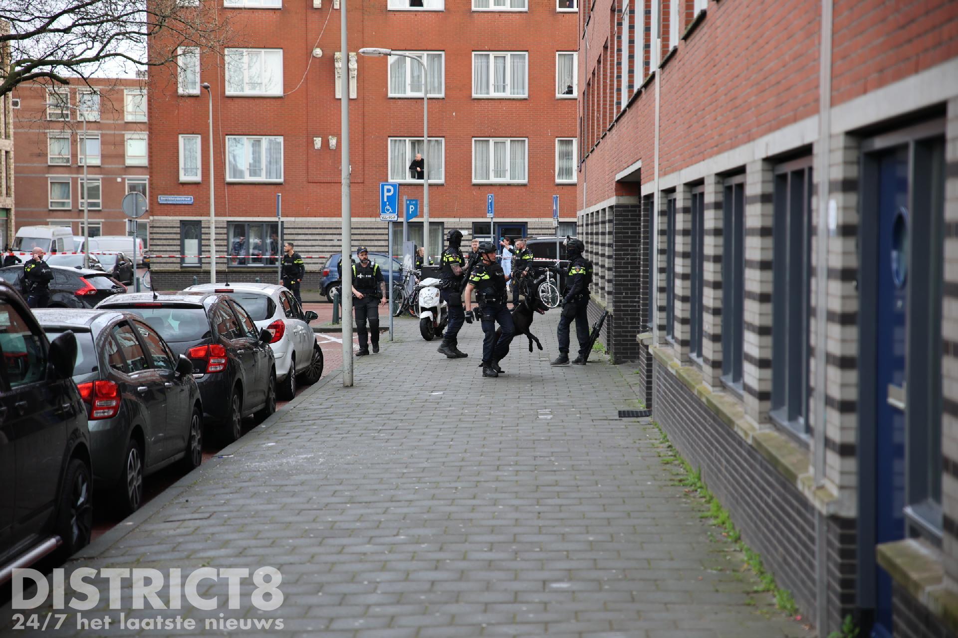De politie heeft in een woning aan de Pieter Lastmanstraat een instap gedaan, daarbij zouden drie verdachten zijn aangehouden. Minimaal een van de verdachten is vervoerd met zakken om zijn armen om kruitsporen veilig te stellen.