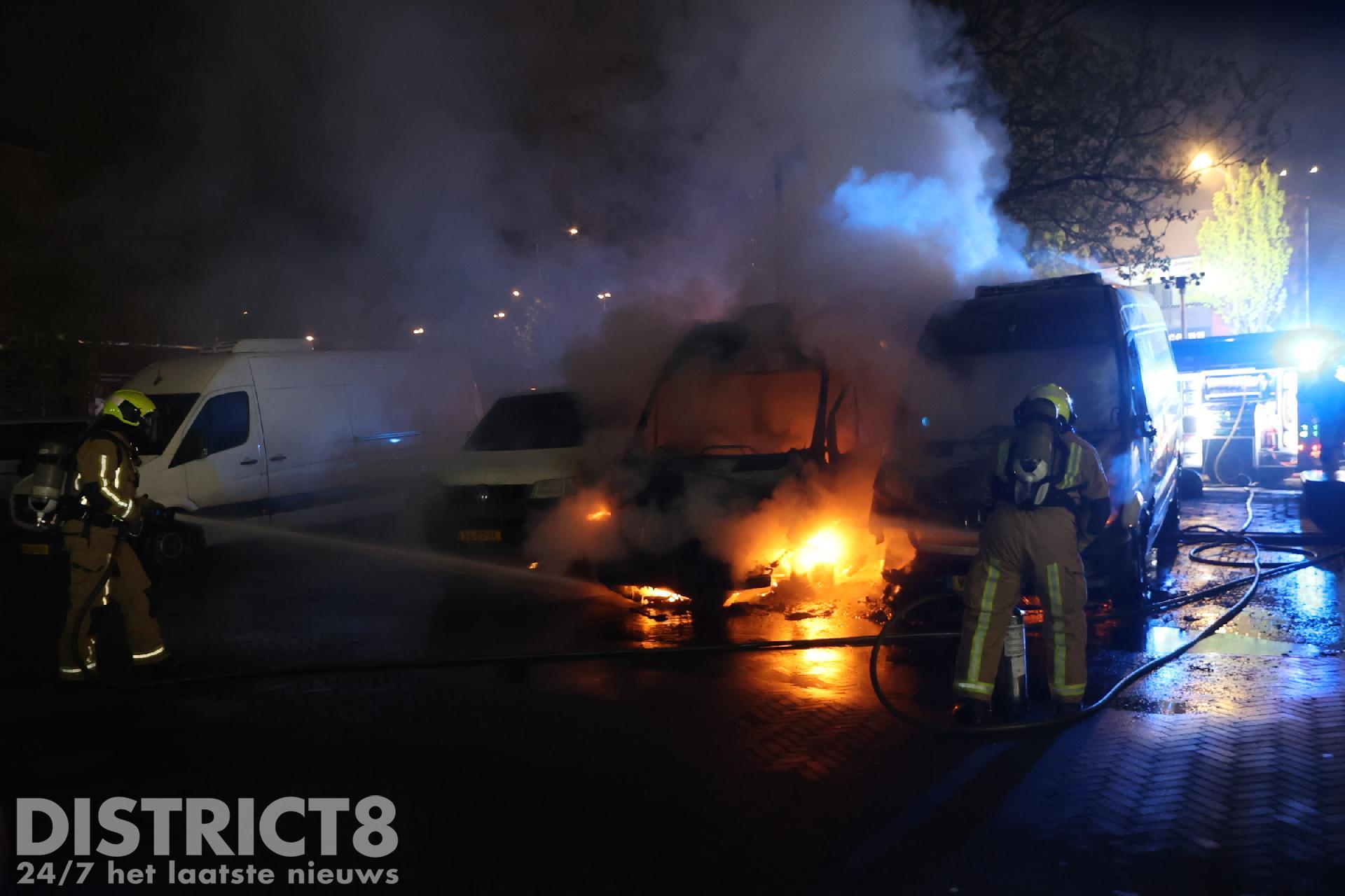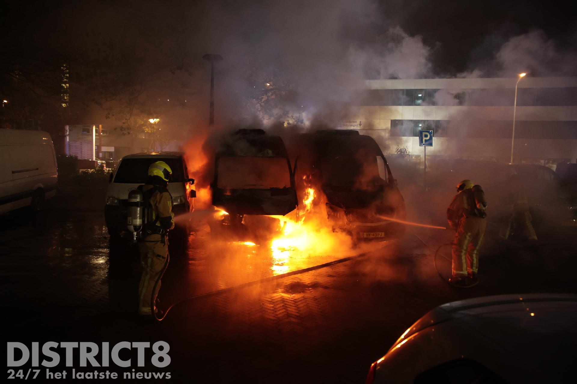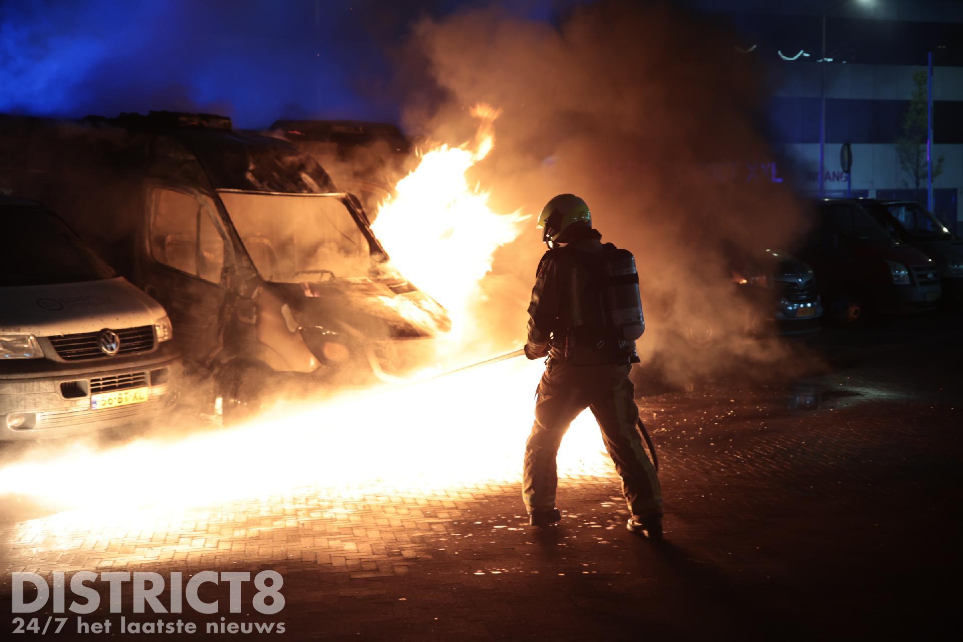 Bij aankomst bleken twee bestelbussen volledig in brand te staan op een parkeerplaats aan de Van der Kunstraat. Ook een derde voertuig, dat vlak naast de twee bestelbussen stond, liep forse brandschade op. Met twee hogedrukspuiten en een schuimblusser wisten de brandweermannen het vuur te blussen. Een vierde bestelbus, die een parkeervak verder stond, liep ook bijna vlam, doordat er een brandbare vloeistof onder deze bestelbus terechtkwam. De brandweer wist dit echter te voorkomen.