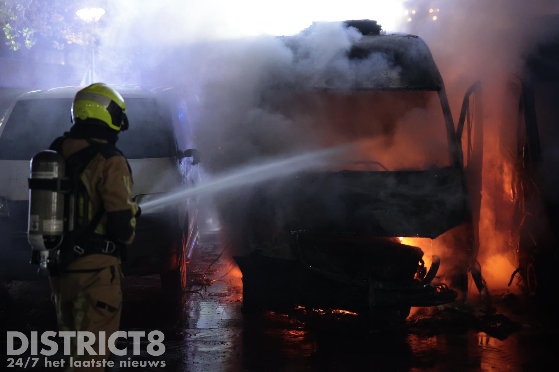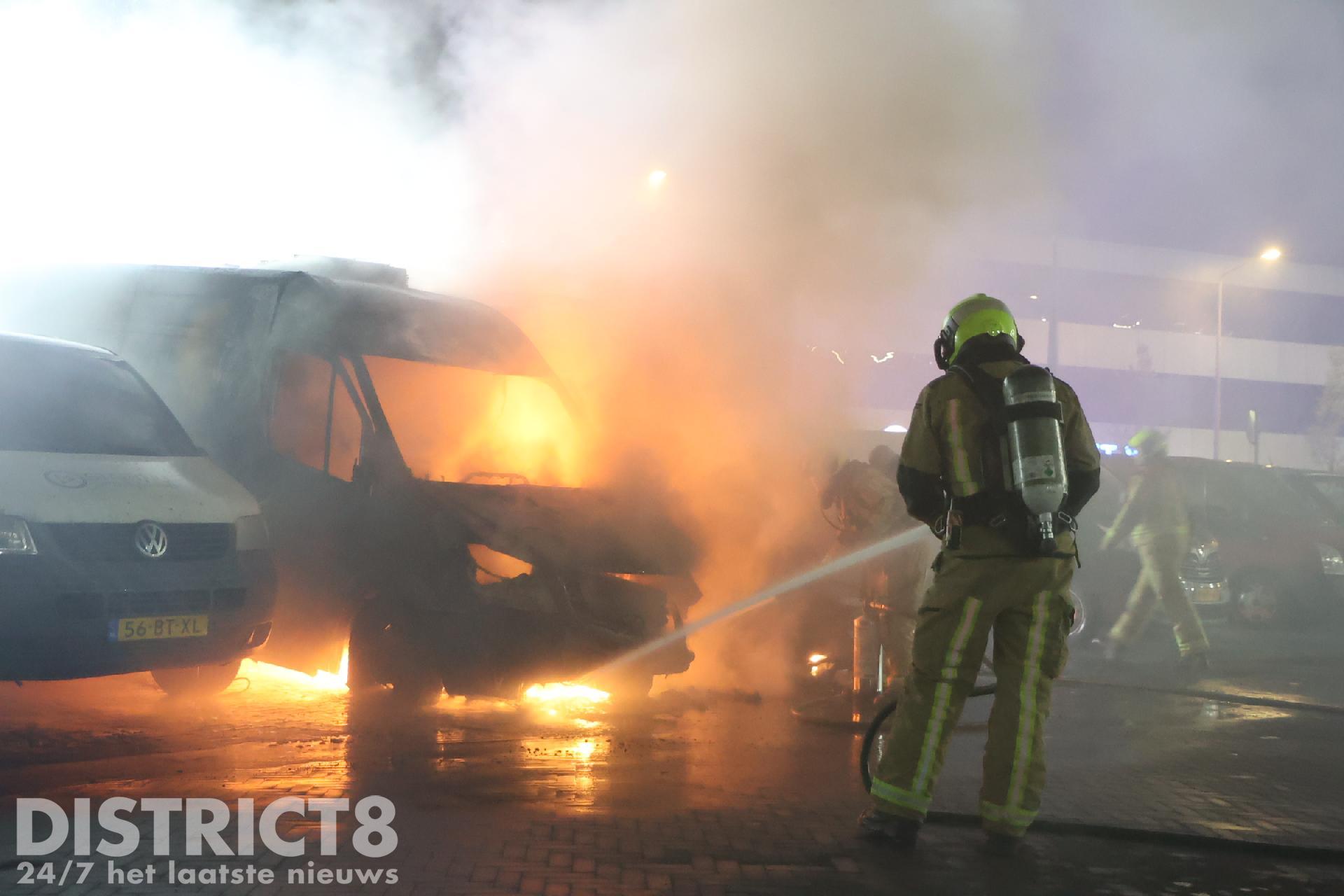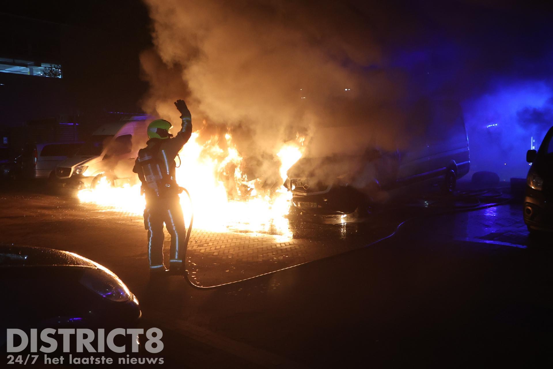 Bij aankomst bleken twee bestelbussen volledig in brand te staan op een parkeerplaats aan de Van der Kunstraat. Ook een derde voertuig, dat vlak naast de twee bestelbussen stond, liep forse brandschade op. Met twee hogedrukspuiten en een schuimblusser wisten de brandweermannen het vuur te blussen. Een vierde bestelbus, die een parkeervak verder stond, liep ook bijna vlam, doordat er een brandbare vloeistof onder deze bestelbus terechtkwam. De brandweer wist dit echter te voorkomen.
