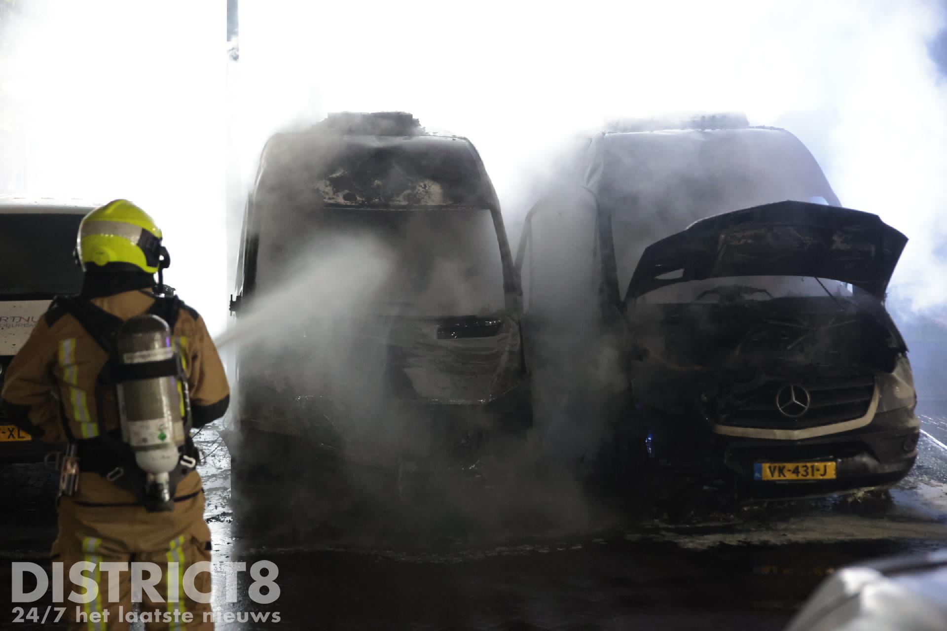 Het blussen van de brand duurde enige tijd, en er werden sloopwerkzaamheden verricht aan de drie bestelbussen om de brand volledig te kunnen blussen. De bestelbussen kunnen als total loss worden beschouwd. De politie verricht onderzoek, waarbij brandstichting niet wordt uitgesloten.