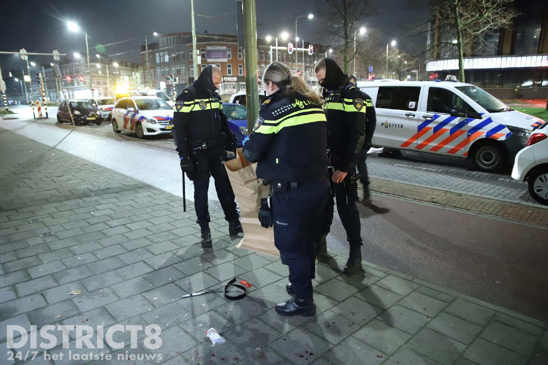 De politie doet onderzoek naar de steekpartij, het mes en een riem zijn als bewijs meegenomen door de politie.