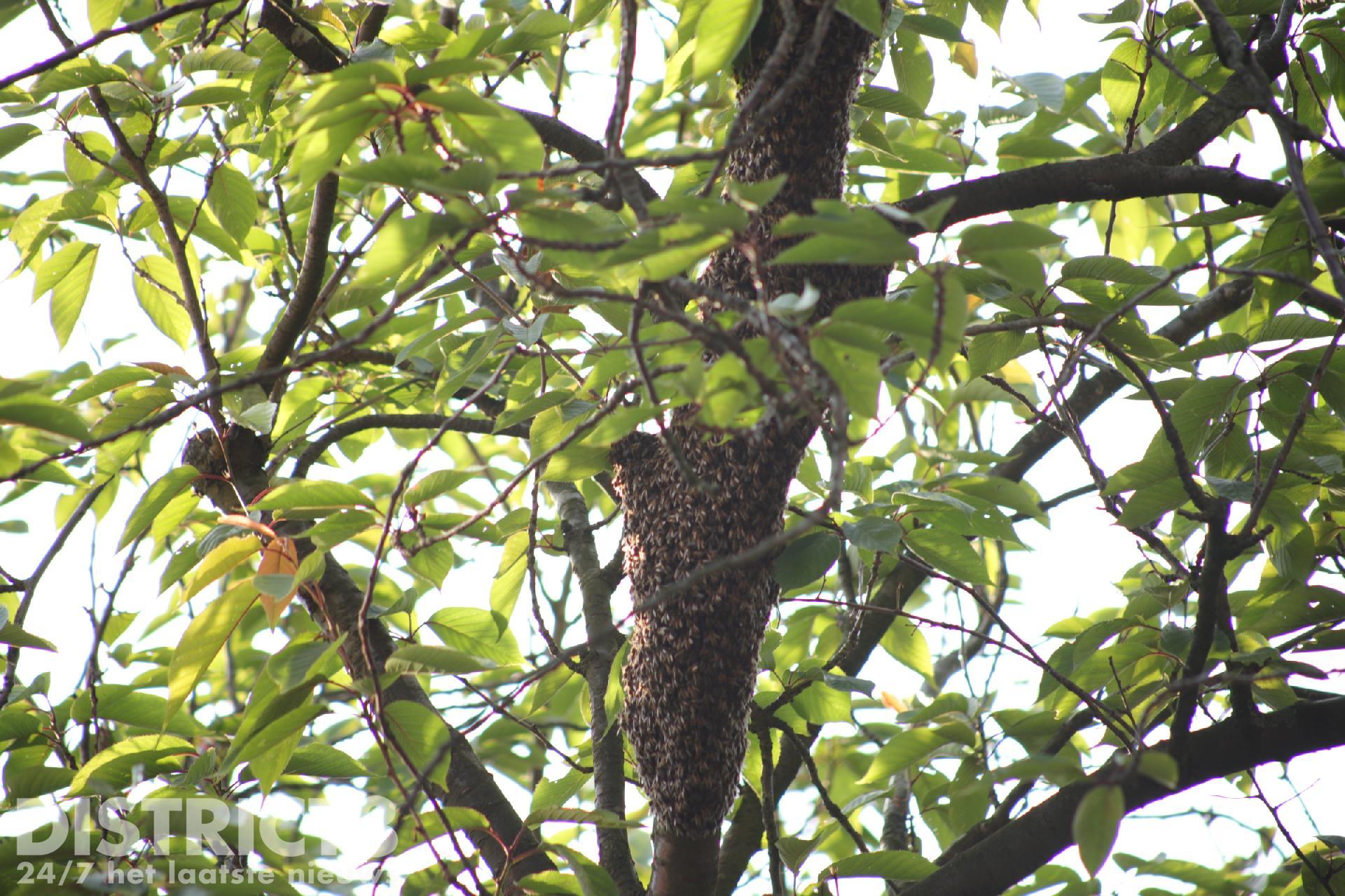 De afgelopen jaren hebben ze er vaker last van gehad: Een bijennest in een boom die in de voortuin staat. Vandaag was het zover om ze er weer uit te halen.