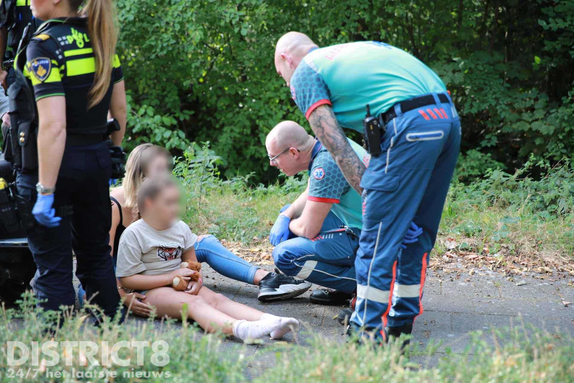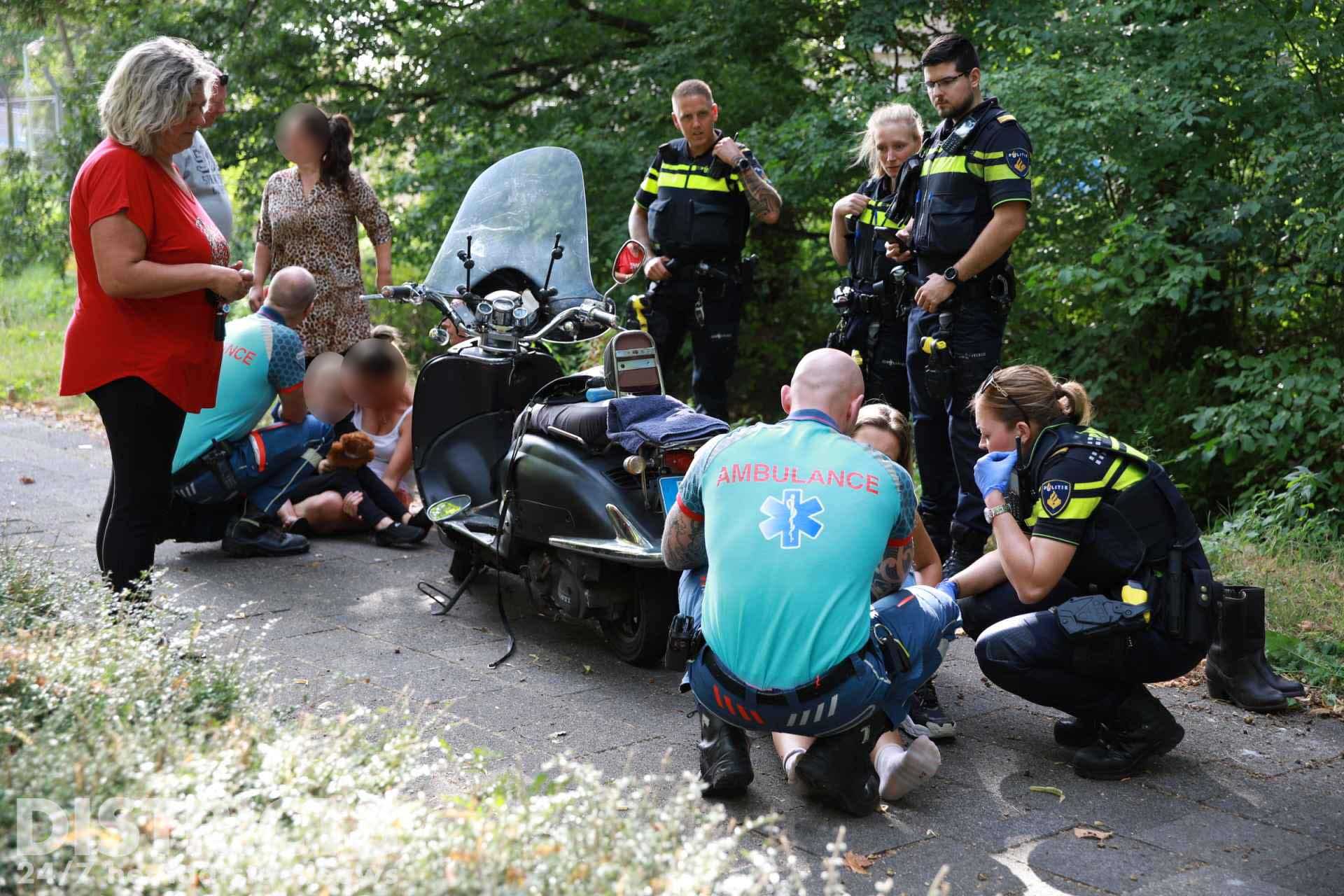 De scooter raakte door het ongeval flink beschadigd. Beide kinderen hebben van de hulpdiensten een traumabeertje gekregen.