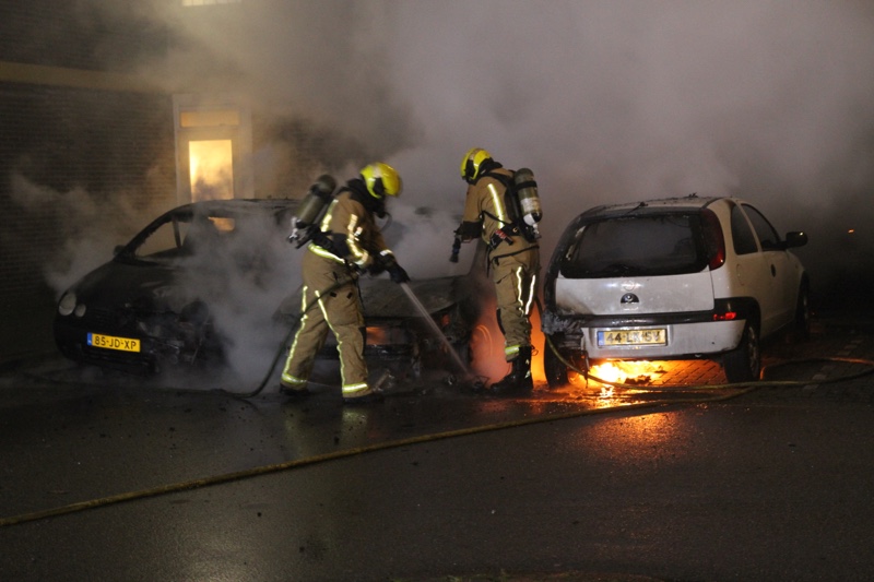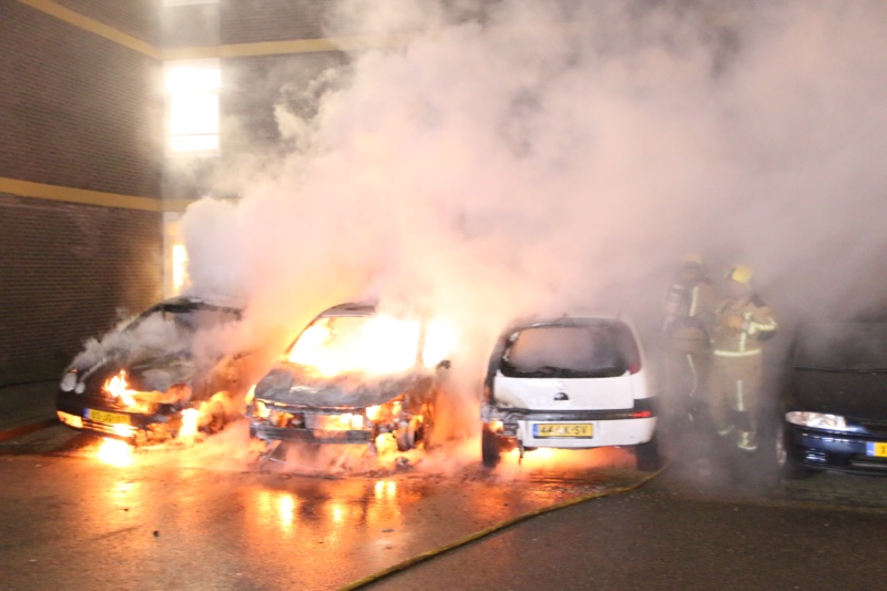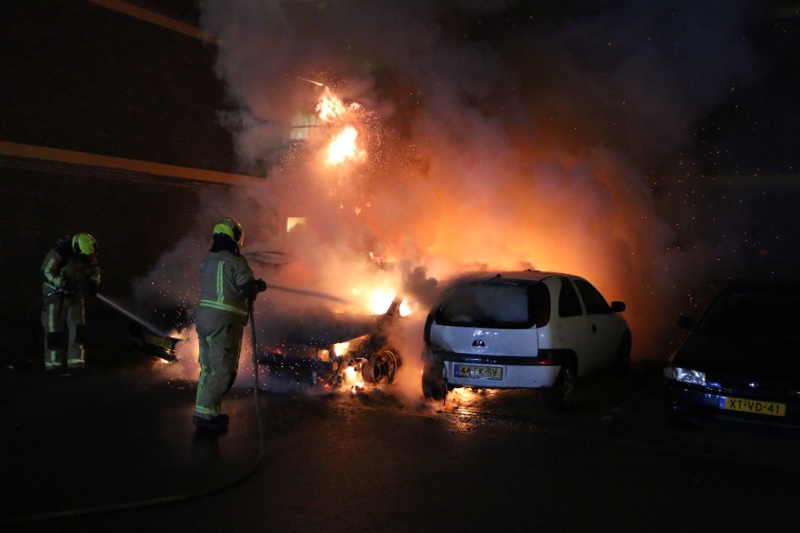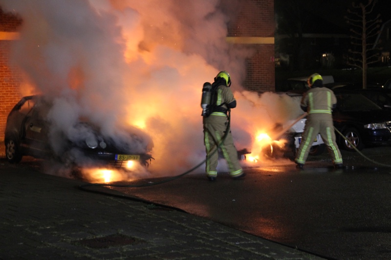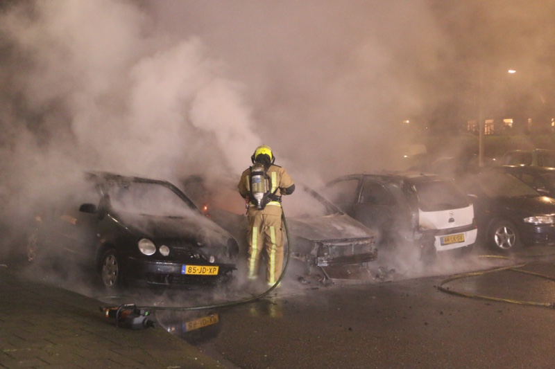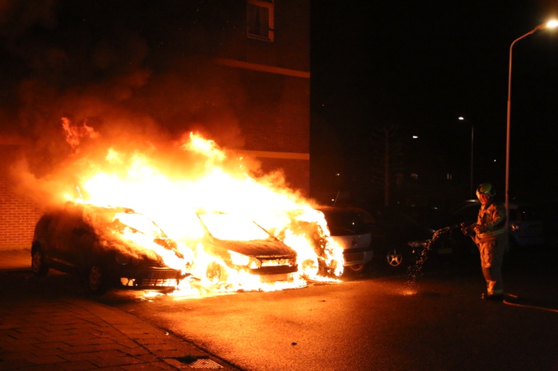 Bij aankomst van de brandweer stonden er drie voertuigen in de brand. De brandweer is direct begonnen met het blussen van de brand. De brandweer schaalde uiteindelijk op naar het sein ‘middelbrand’. De oorzaak van de brand is niet bekend.