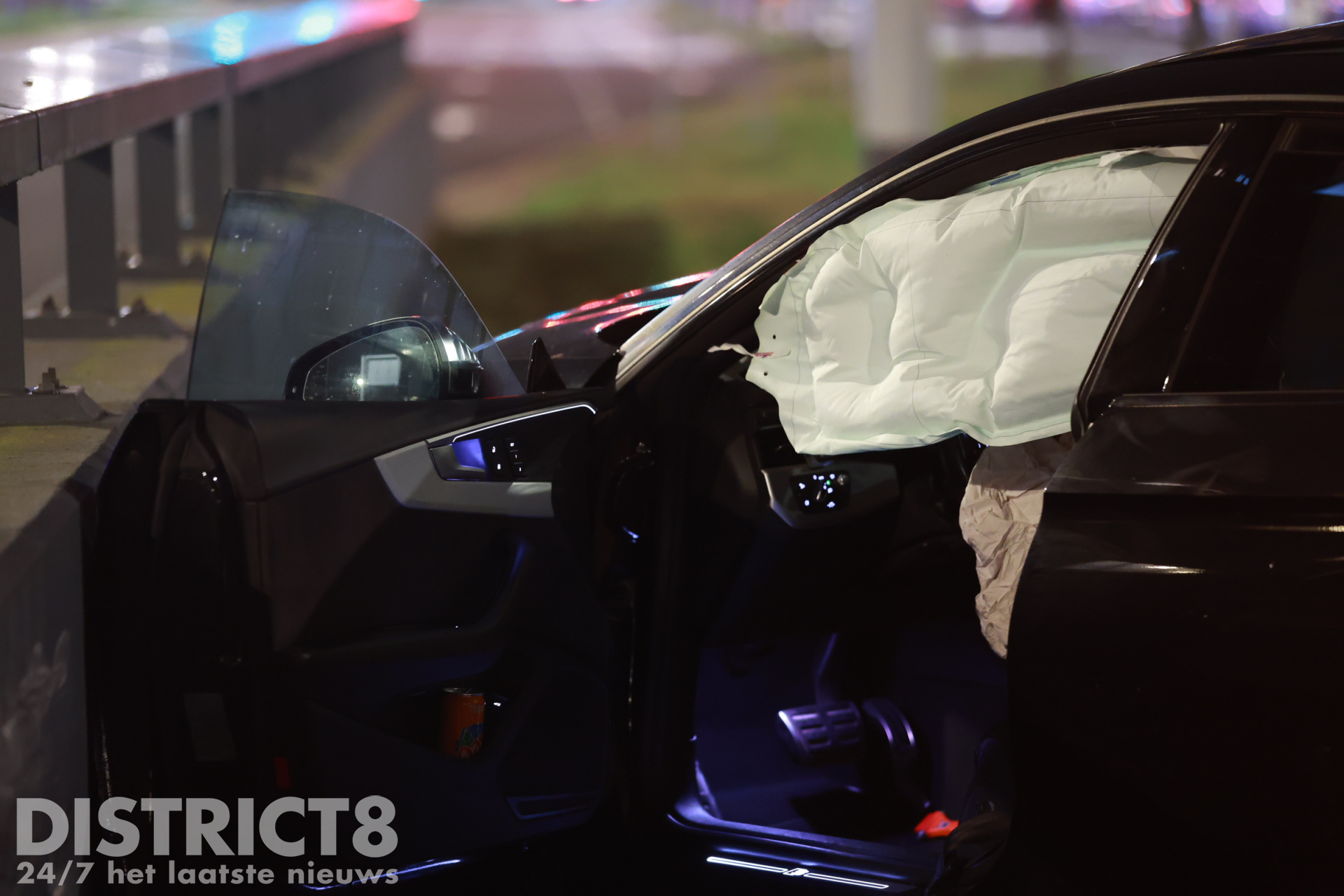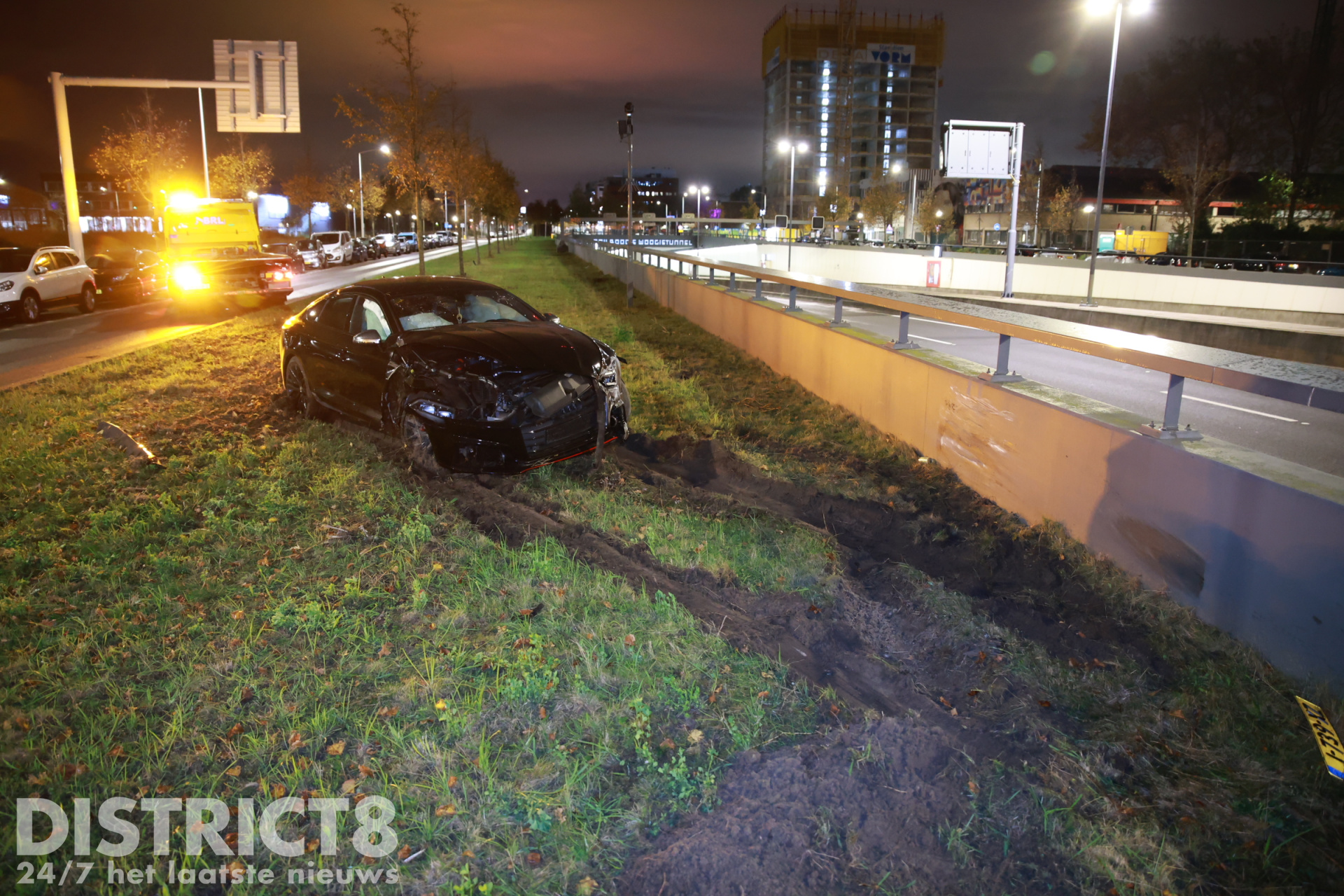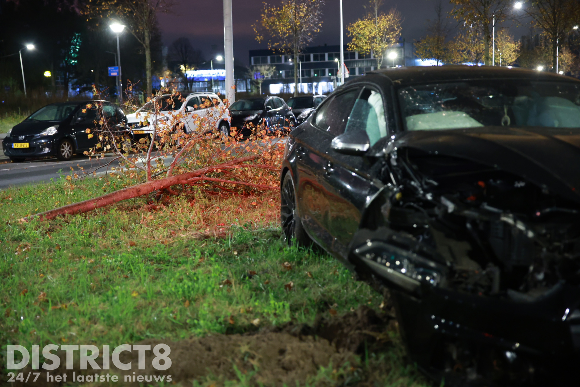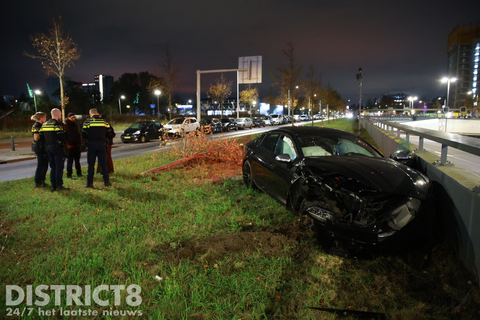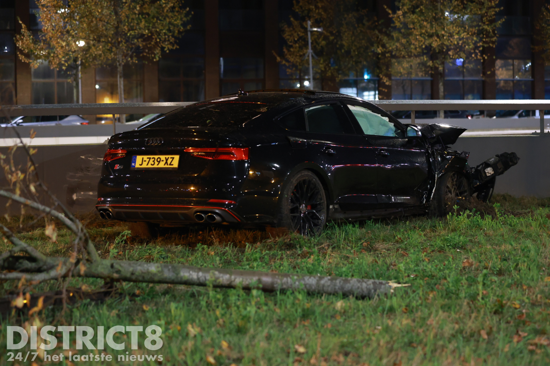 De auto raakte daarbij een boom en kwam vervolgens tot stilstand tegen de betonnen wand van de Victory Boogie Woogietunnel.