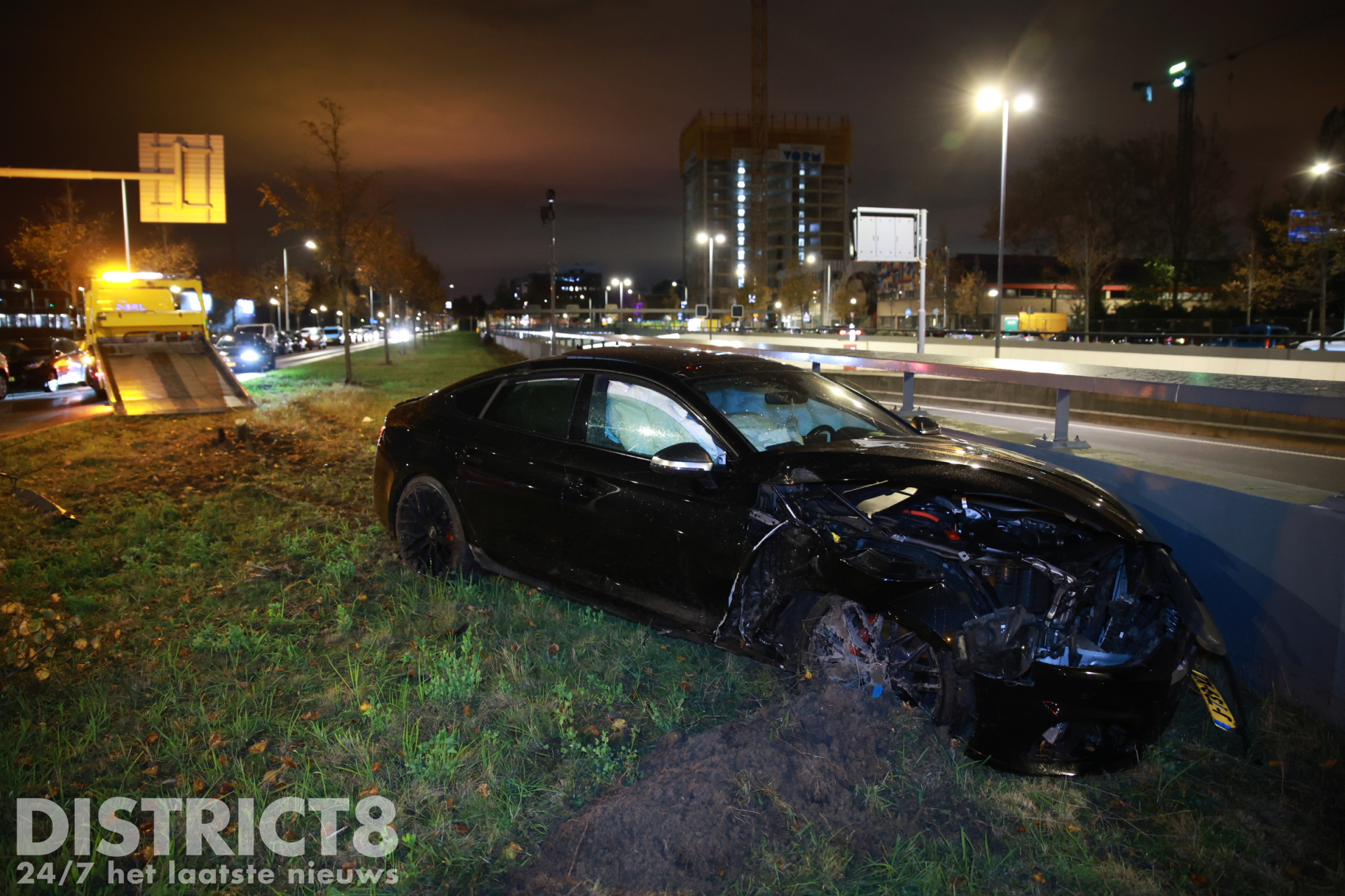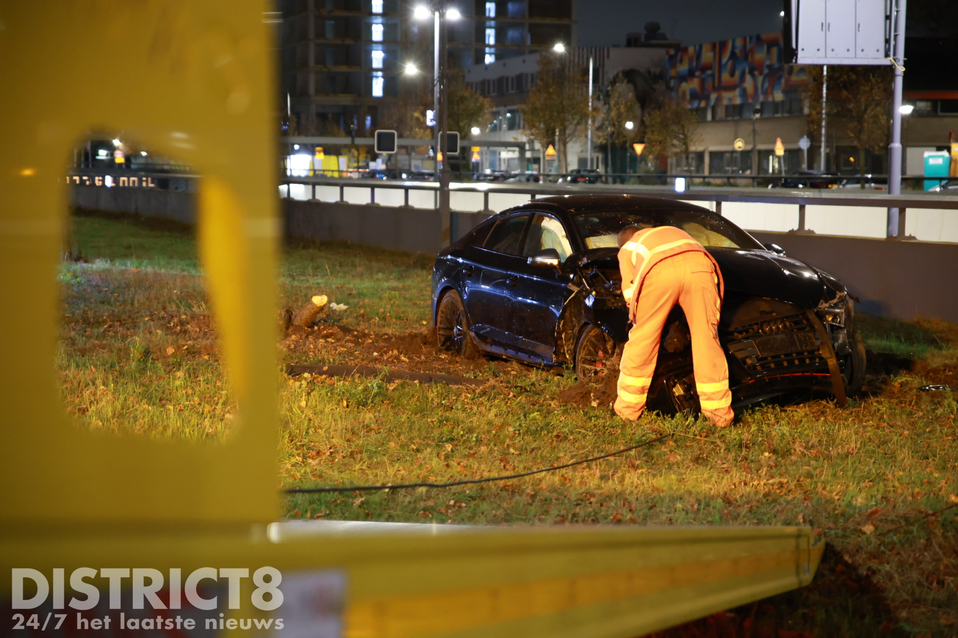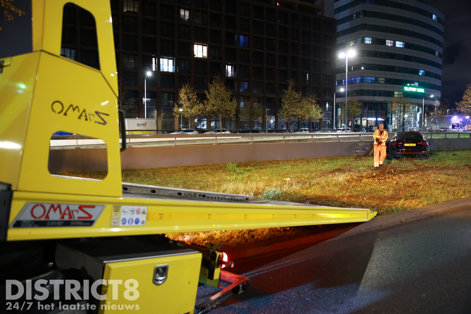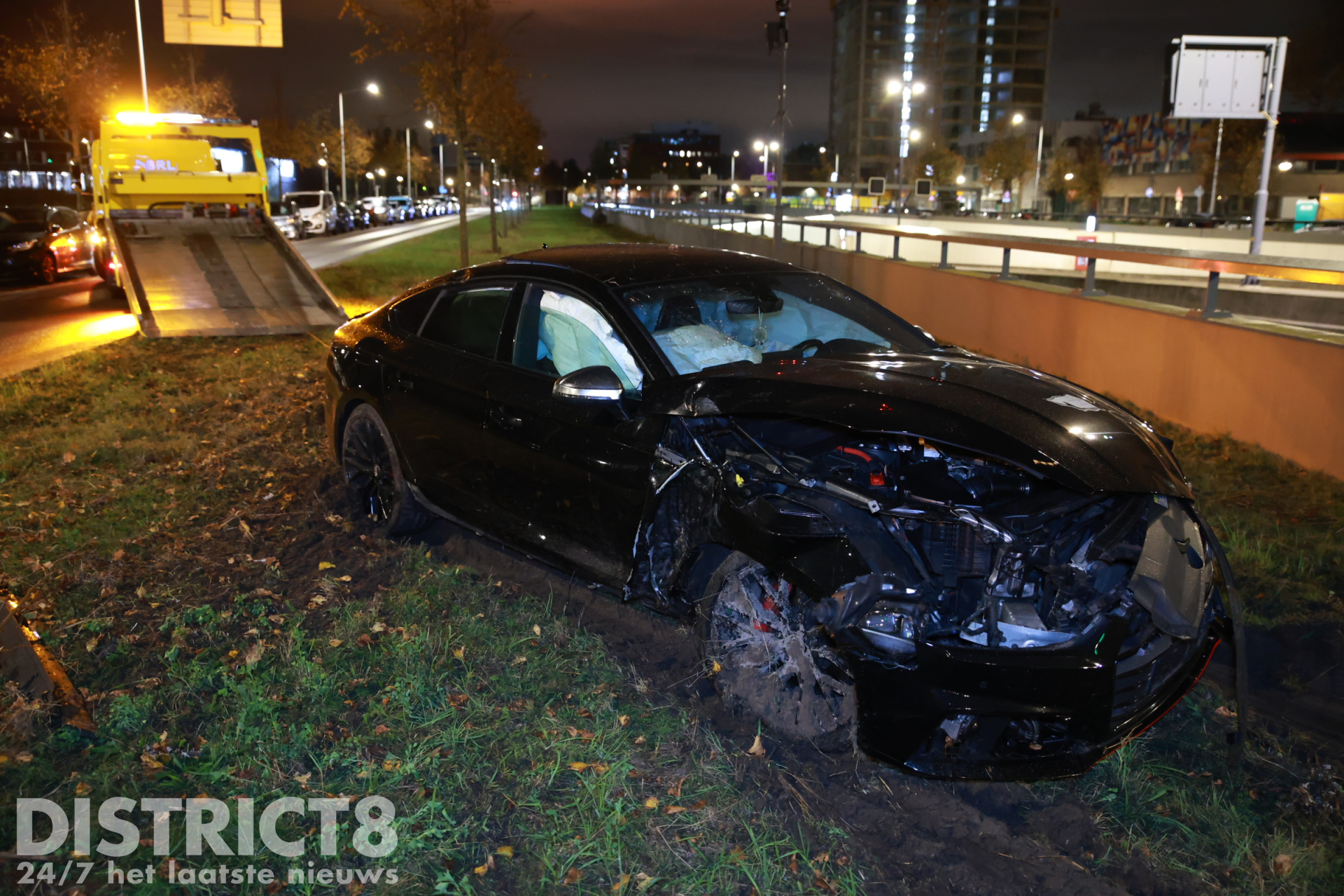 De auto raakte daarbij een boom en kwam vervolgens tot stilstand tegen de betonnen wand van de Victory Boogie Woogietunnel.