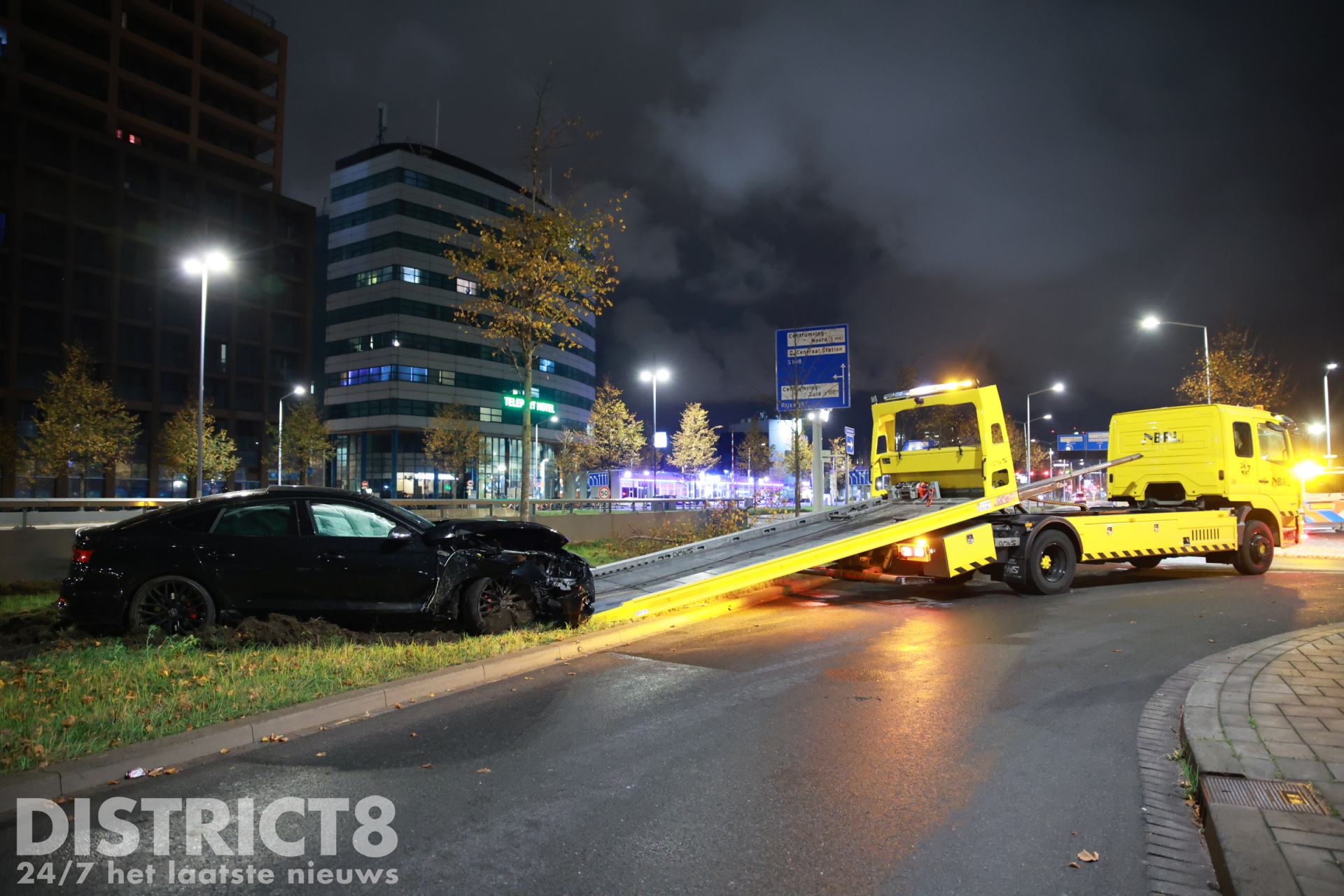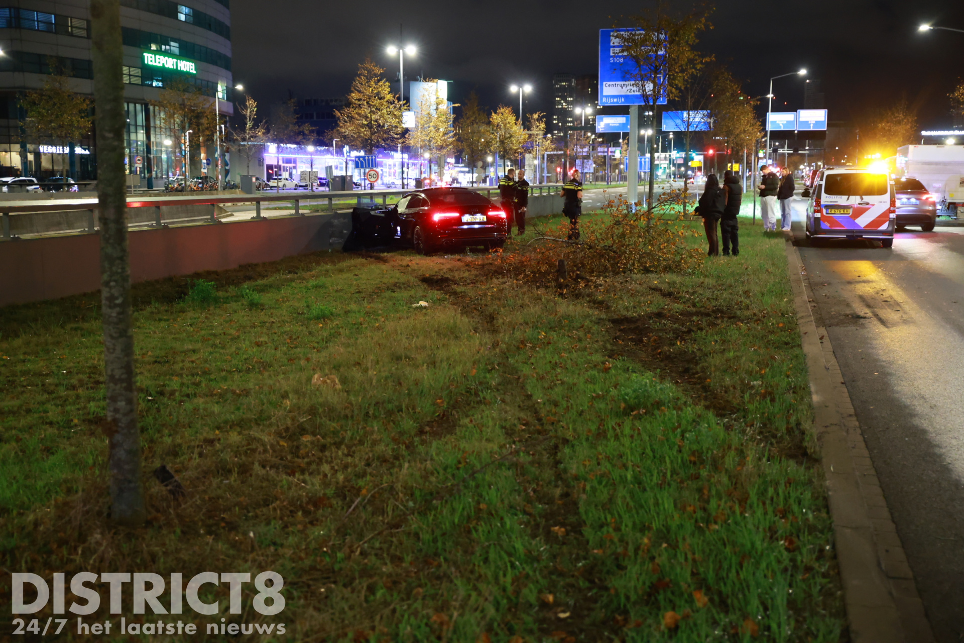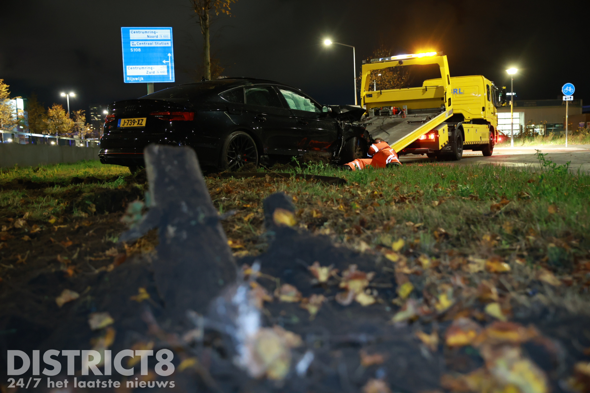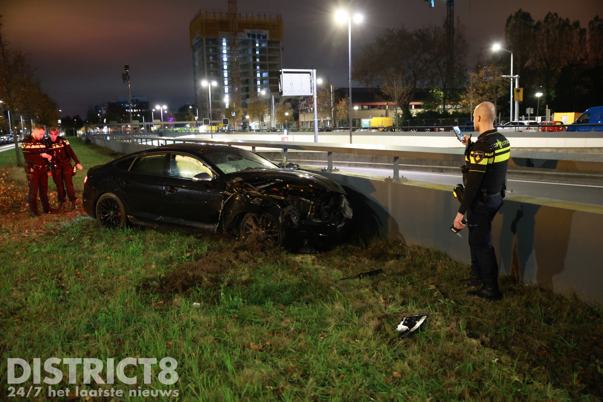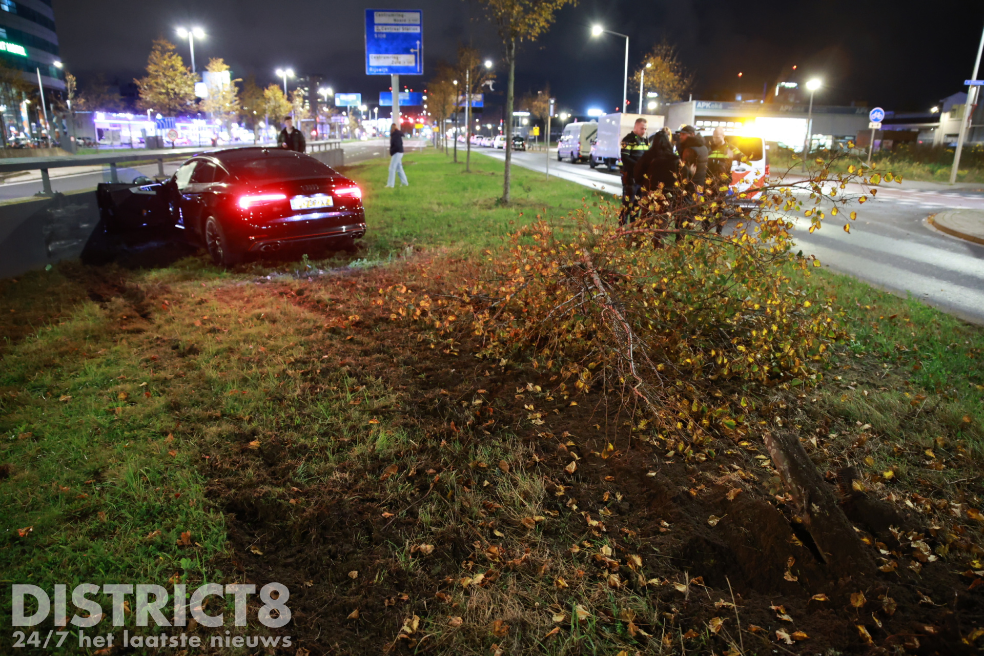 De auto raakte daarbij een boom en kwam vervolgens tot stilstand tegen de betonnen wand van de Victory Boogie Woogietunnel.
