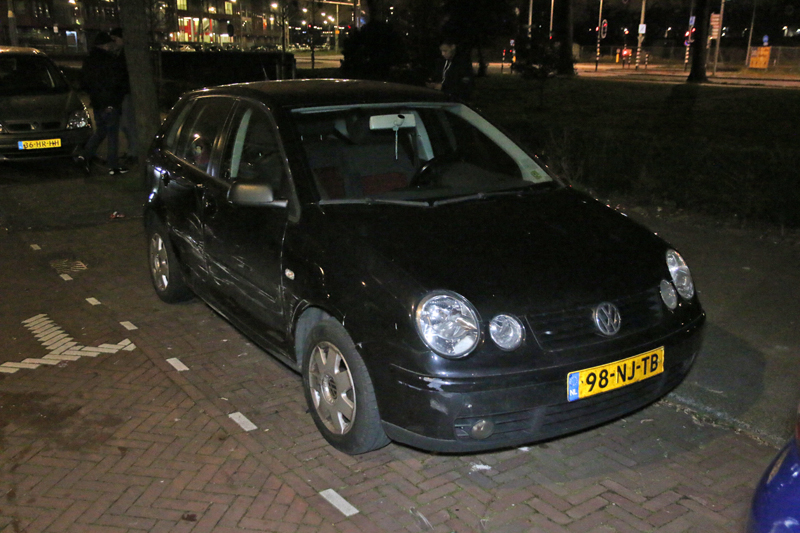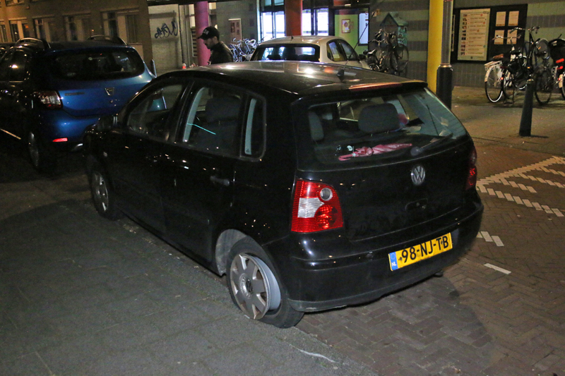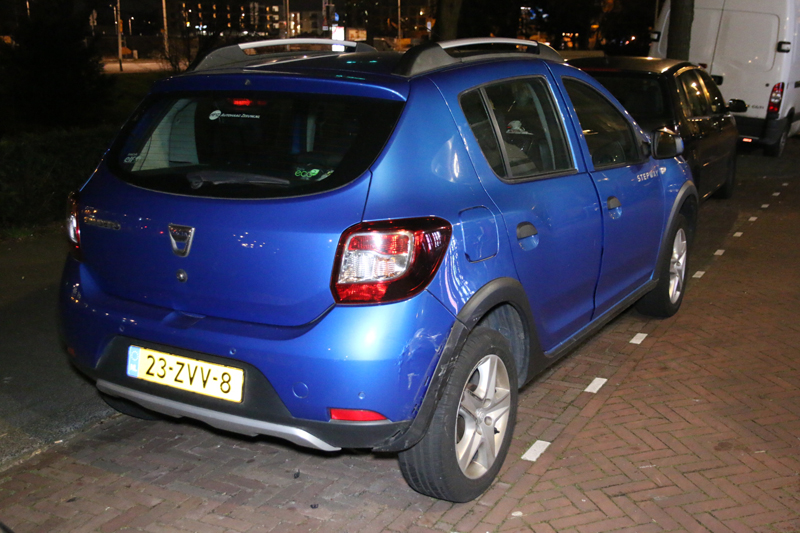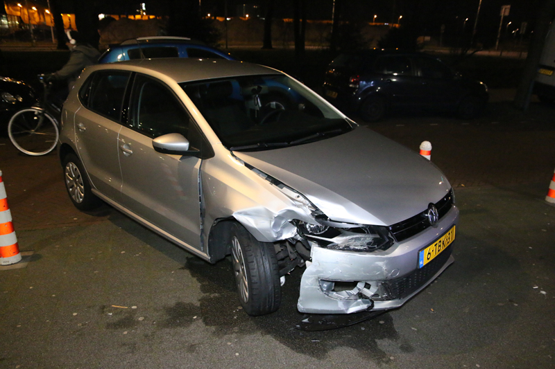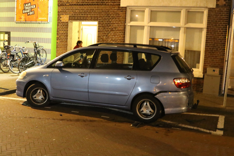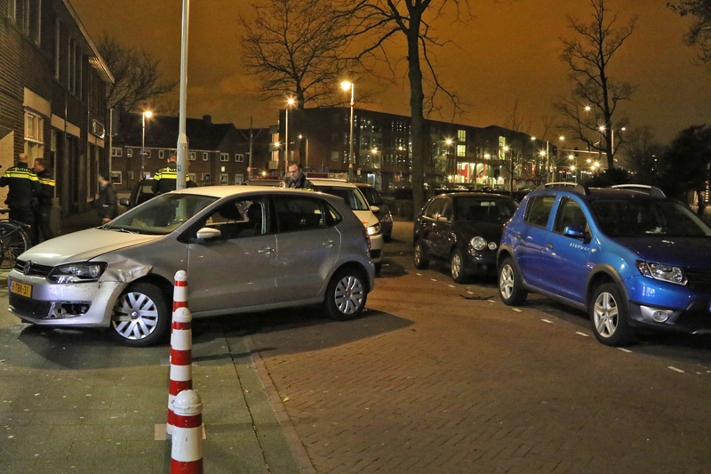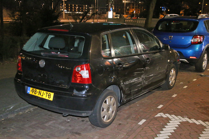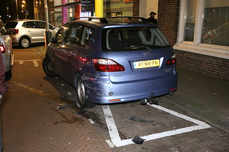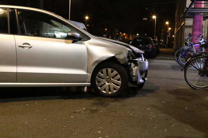 De schade aan de geparkeerde voertuigen is flink. Eén van de voertuigen staat met de velg op de stoep door de klap.