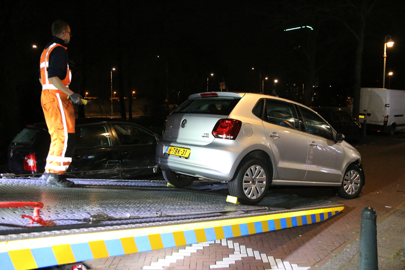 Een berger gaat de voertuigen bergen, de politie handelt de schadeformulieren met de betrokken partijen af.