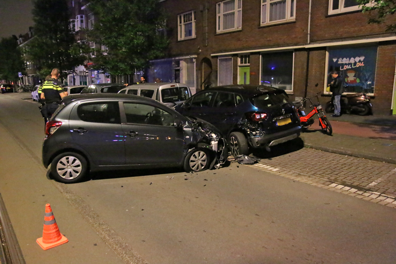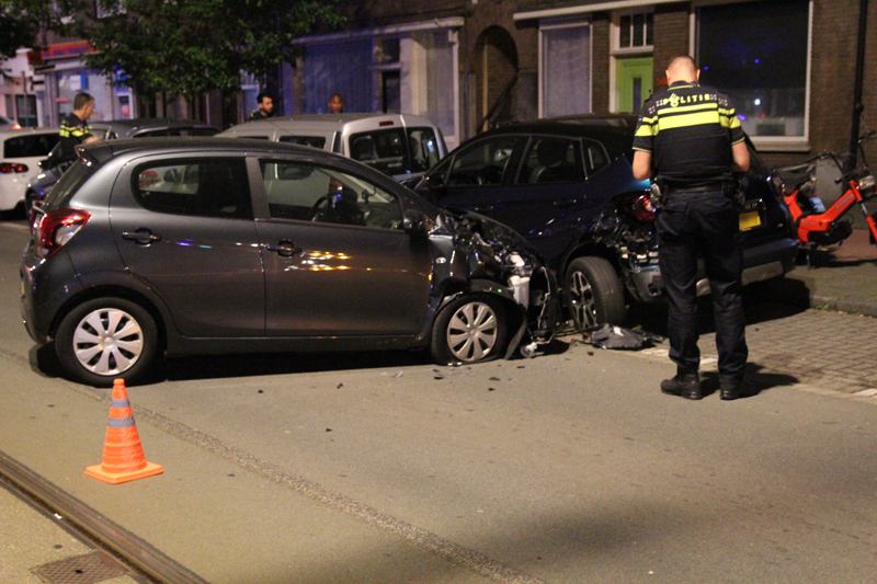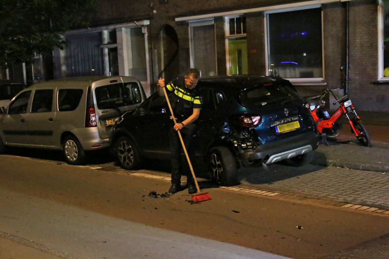 Door de flinke klap schoof de geparkeerde auto naar voren dat er voor zorgde dan nog twee andere geparkeerde auto’s schade op liepen.