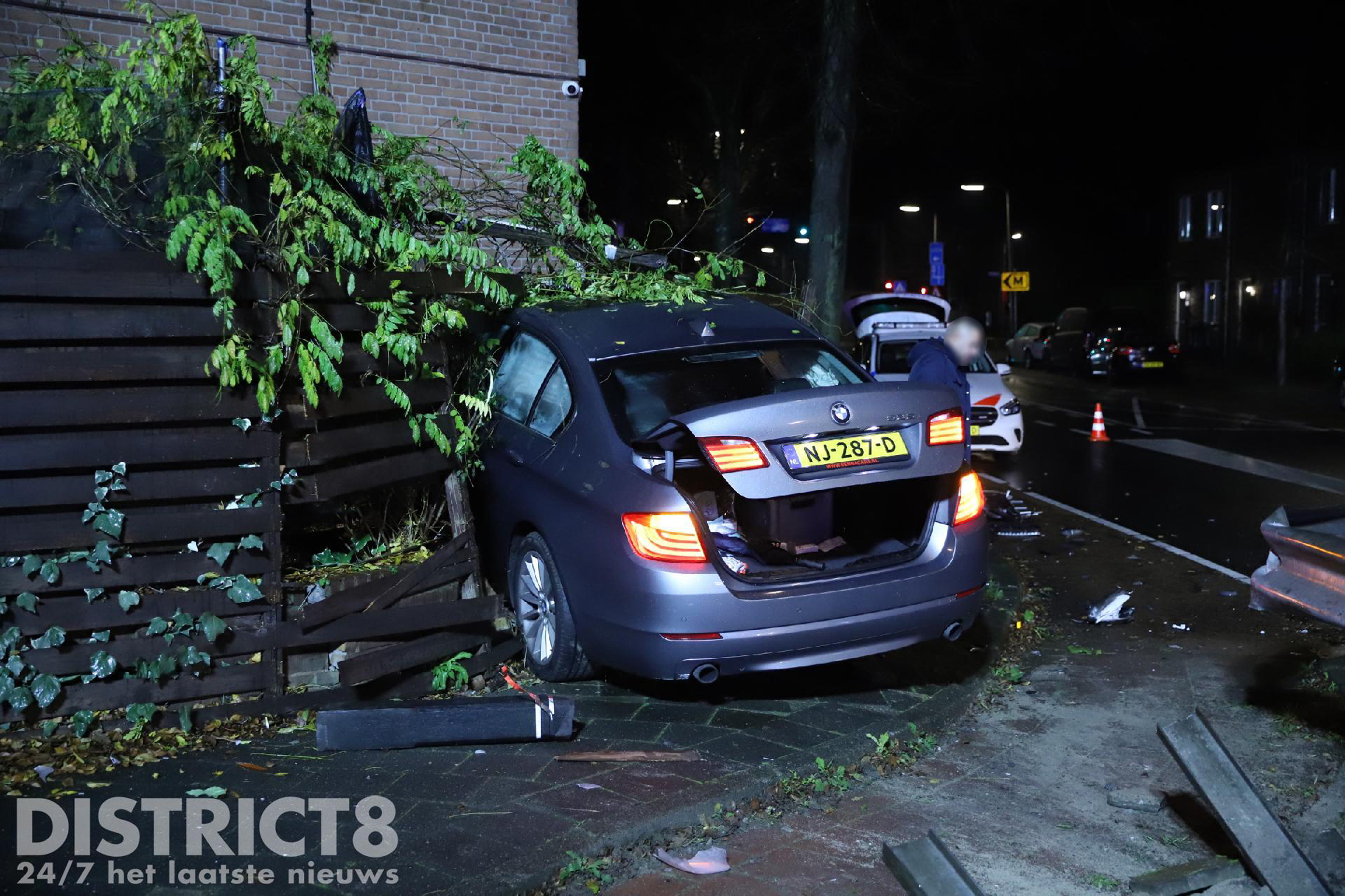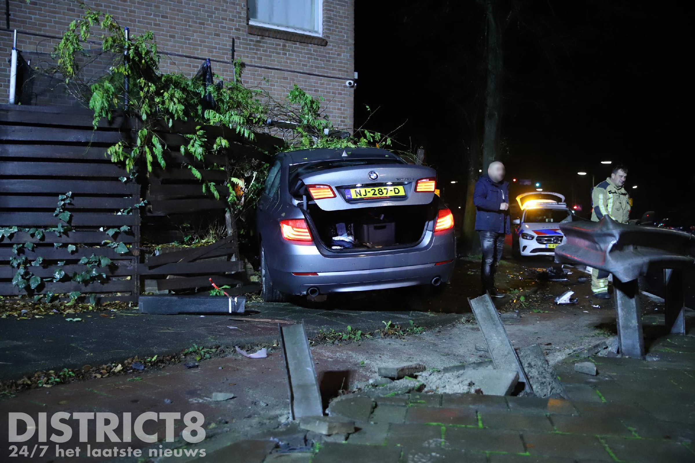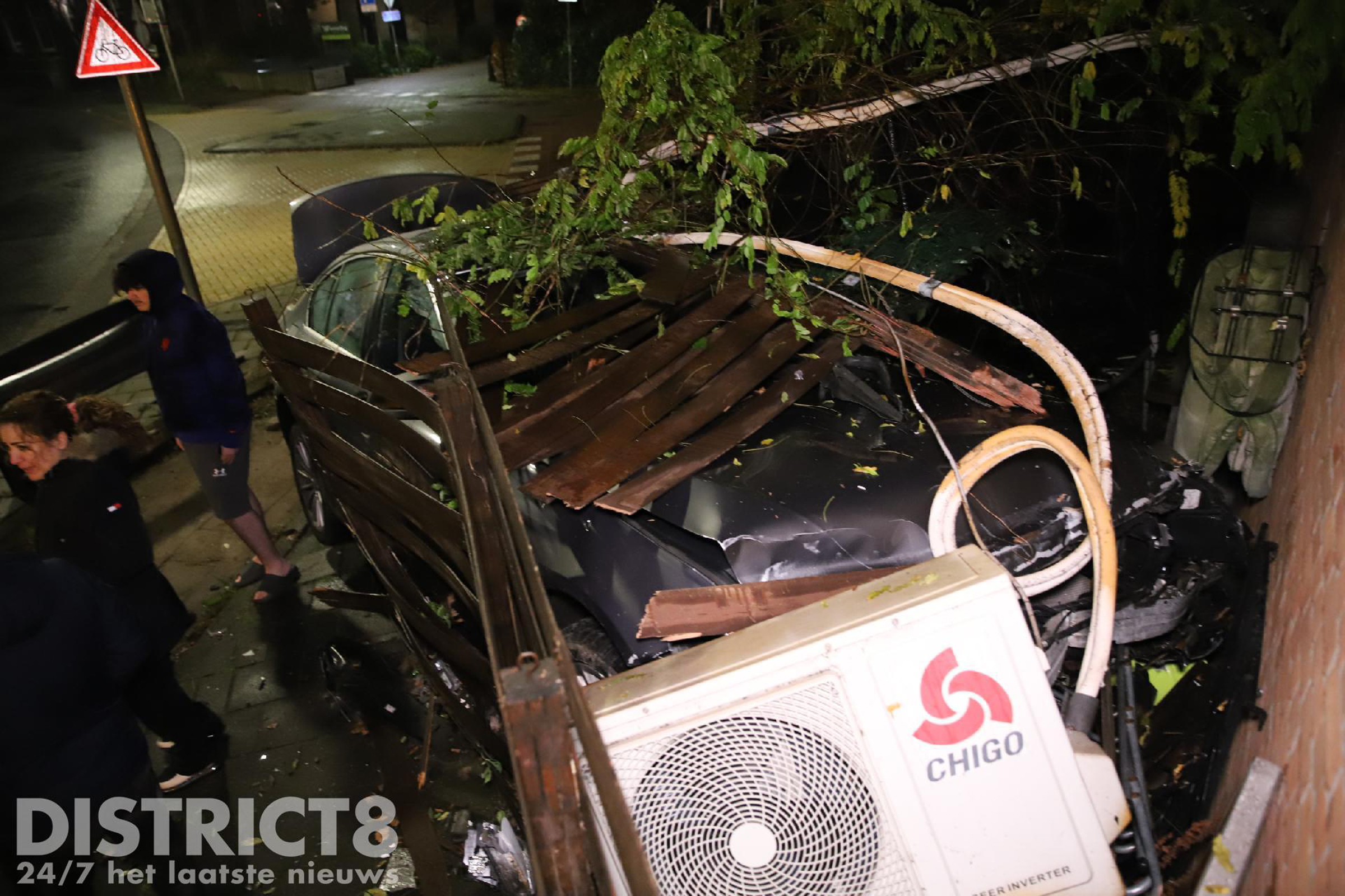 Tegen de gevel van de woning was een airco bevestigd. Deze is flink beschadigd geraakt. Ook de auto heeft flinke schade opgelopen.