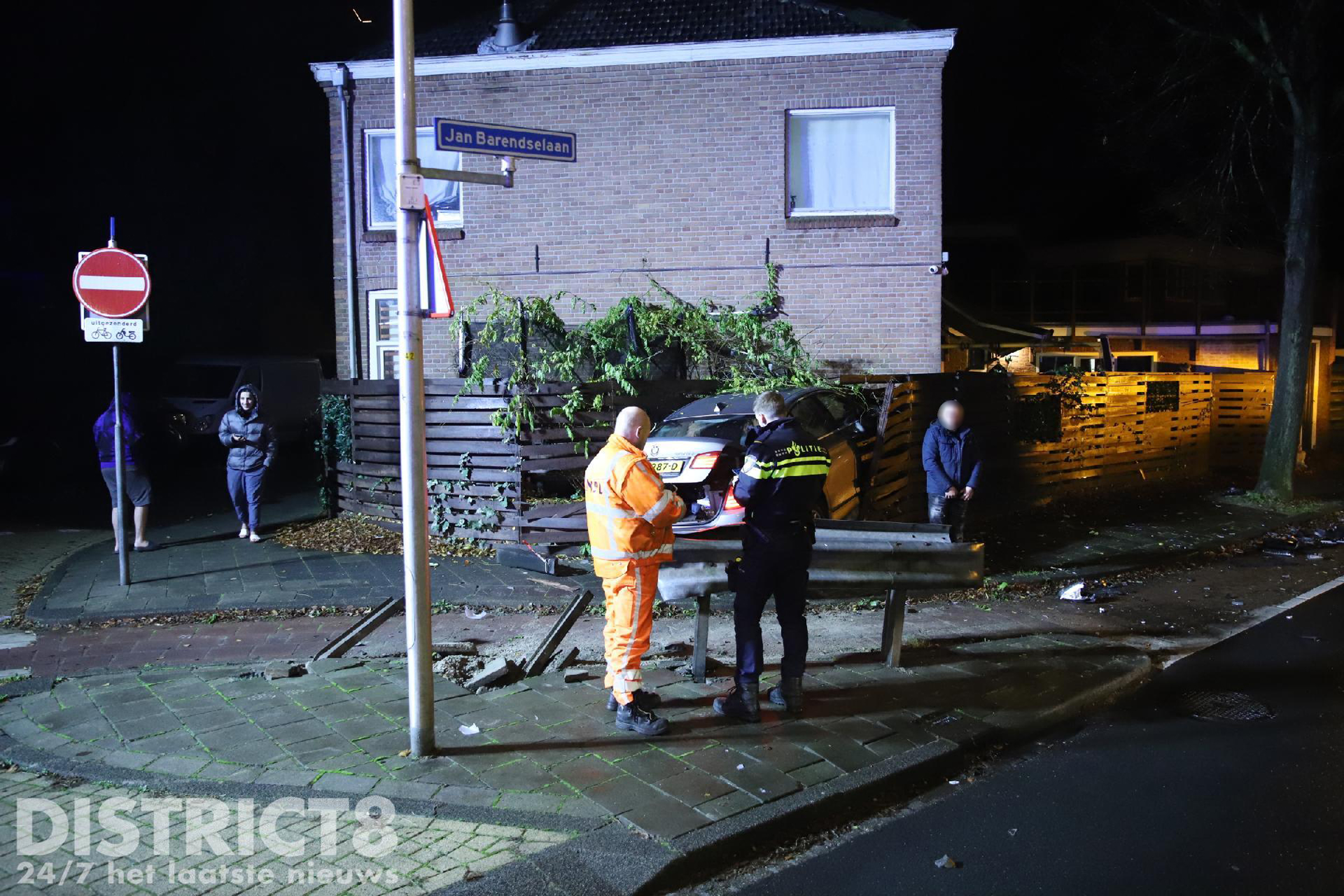Even na half drie ging het goed mis. De automobilist kwam vanaf de Wateringseweg en reed in de richting van het centrum van Poeldijk. In de bocht naar de Jan Barendselaan verloor de bestuurder de macht over het stuur en reed rechtdoor. De automobilist ramde een vangrail, een schutting en kwam in de tuin van een woning tot stilstand.