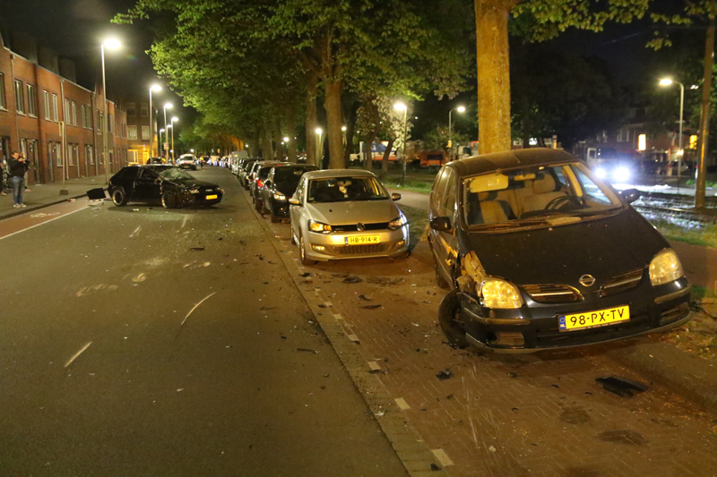 In totaal raakten er vier geparkeerde auto’s en de auto van de veroorzaker beschadigd. Een berger kwam ter plaatse om twee zwaar beschadigde auto’s af te slepen.