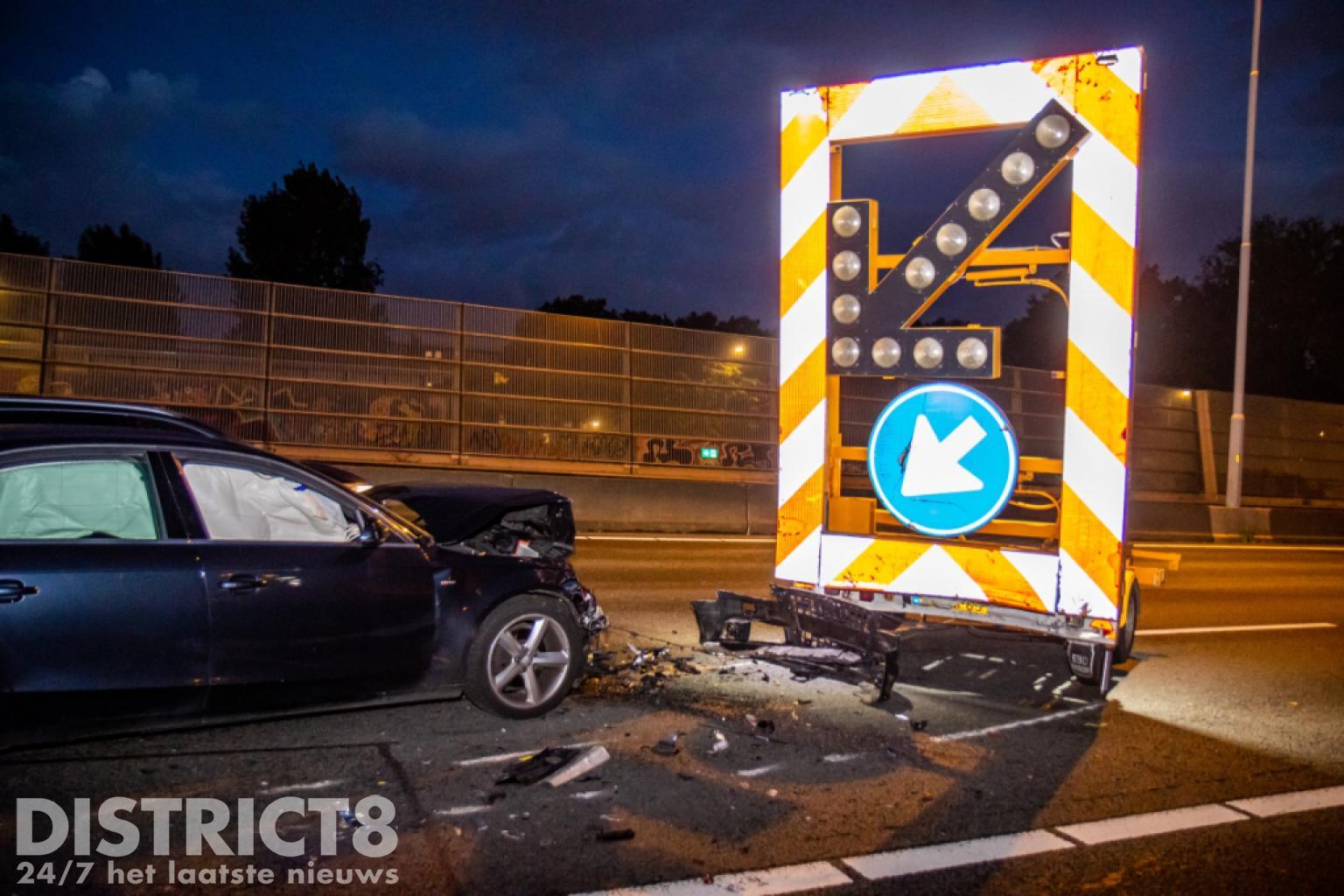 Dronken automobiliste rijdt frontaal op pijlwagen A20 Rotterdam