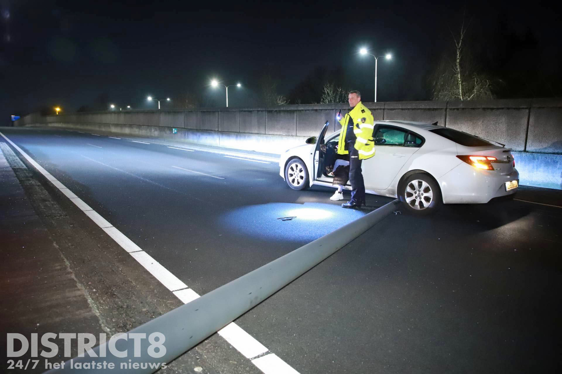 Na het eenzijdige ongeval is de lichtmast afgebroken en even verder op het wegdek terecht gekomen. Een automobiliste die achter het gecrashte voertuig reed zag de lichtmast, en het ongeval, niet en knalde op de lichtmast. Haar voertuig kwam uiteindelijk op de lichtmast tot stilstand. Toen de bestuurster een blaastest moest afleggen kwam op het scherm van de blaastest een ‘A’ te staan, de A van aanhouden. De bestuurster bleek te veel alcohol op te hebben.