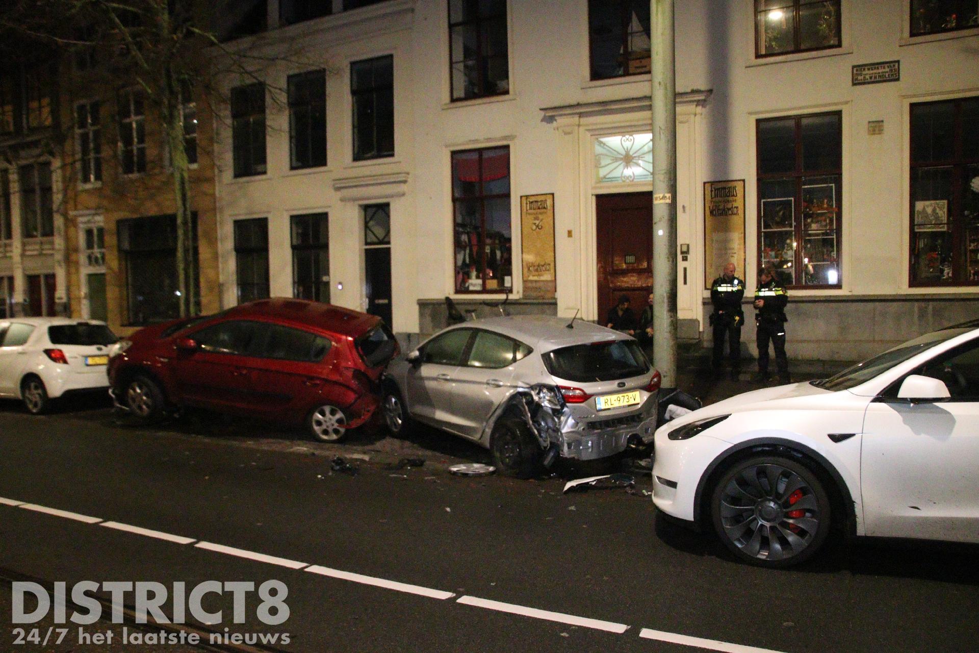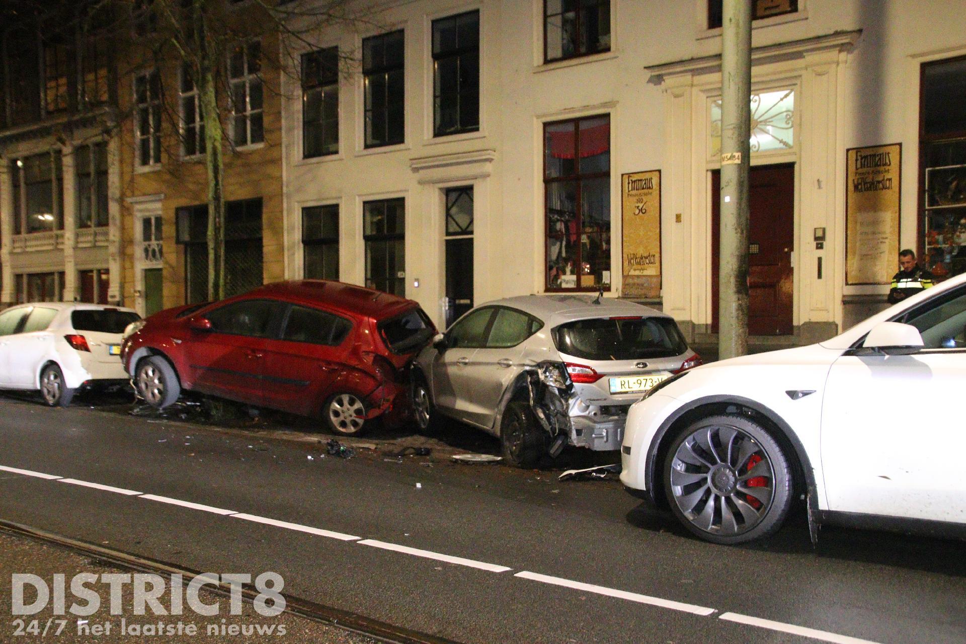 De bestuurder is in vermoedelijke dronken toestand tegen een geparkeerde personenauto gebotst waarna een ander voertuig op een boom klapte. De getroffen Ford en Hyundai liepen aanzienlijke schade op. Twee voorbijgangers zagen het ongeluk gebeuren en keken op toen zij de bestuurder van de Tesla zagen uitstappen en de benen nam. De voorbijgangers alarmeerden vervolgens de politie.