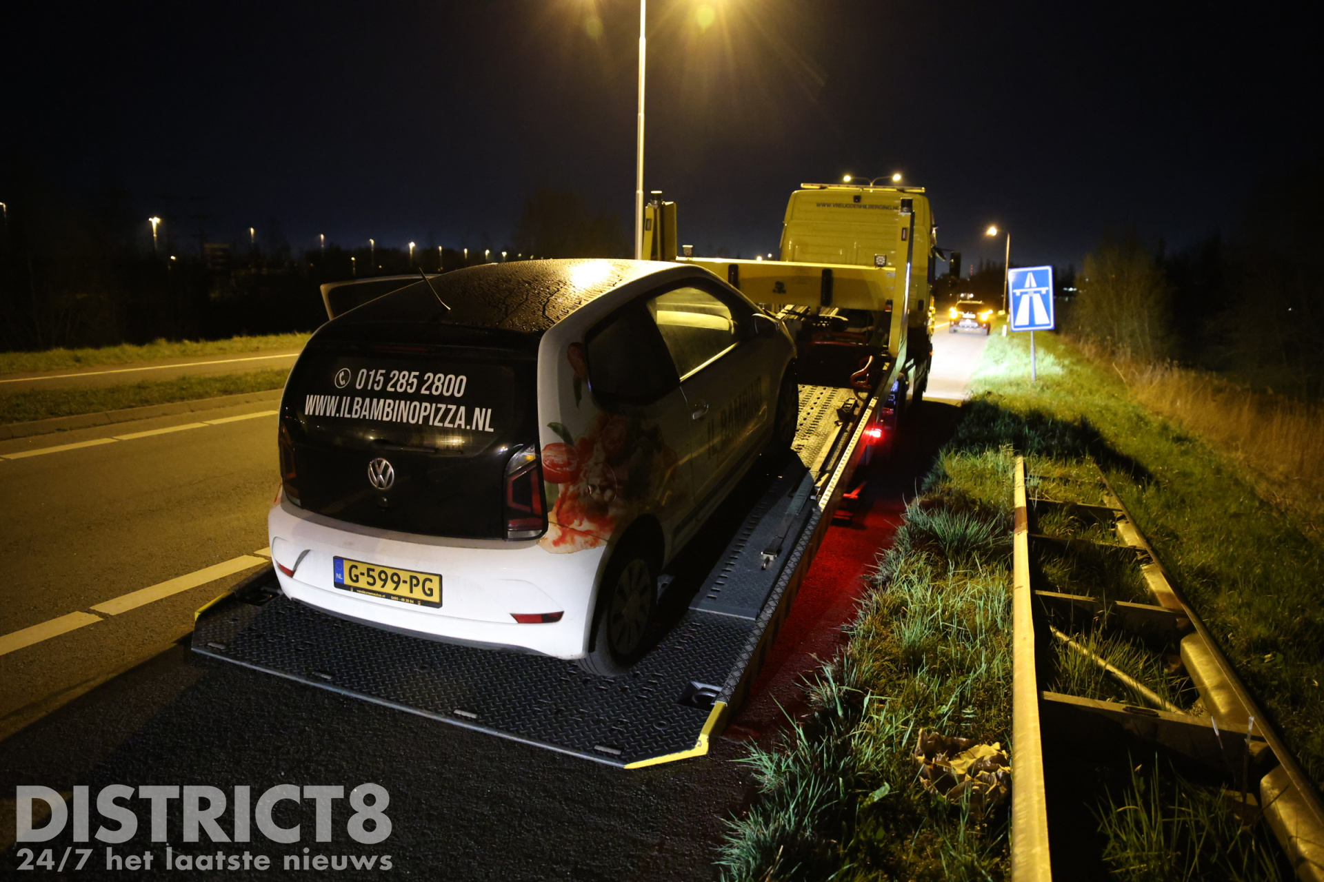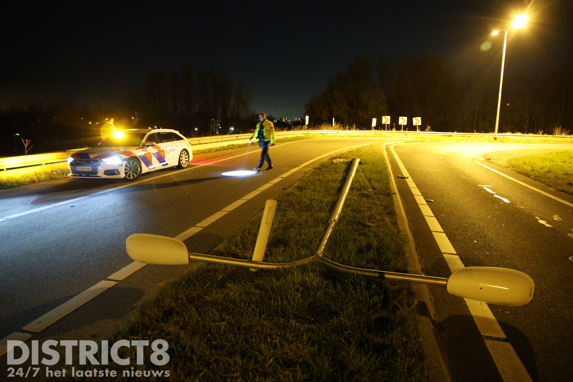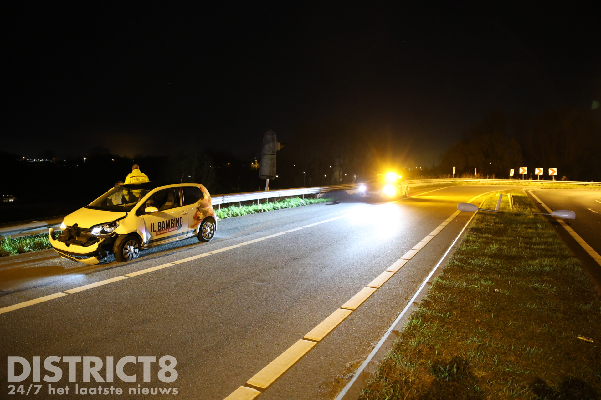 Door nog onbekende oorzaak raakte een pizzabezorger met zijn voertuig van de weg in de bocht van de N470 richting de A4 in de richting van Schiedam. Hierbij raakte de automobilist een lantaarnpaal.
