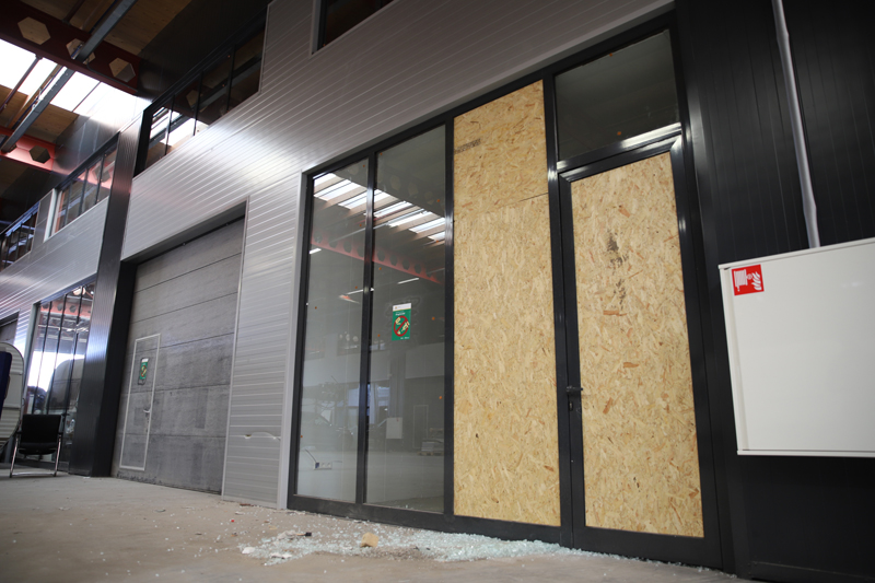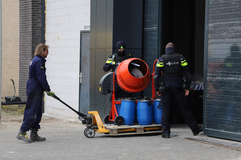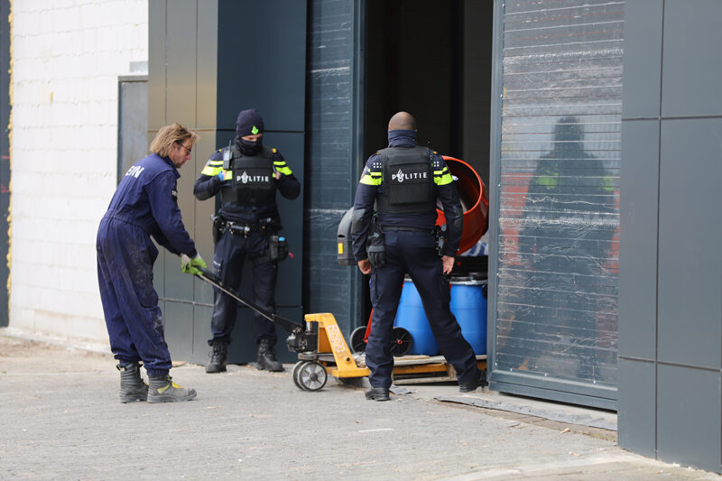 Volgens een woordvoerder van de Landelijke Eenheid is er in het bedrijfspand een drugslab aangetroffen na aanleiding van een lopend onderzoek. Er zou één persoon zijn aangehouden.