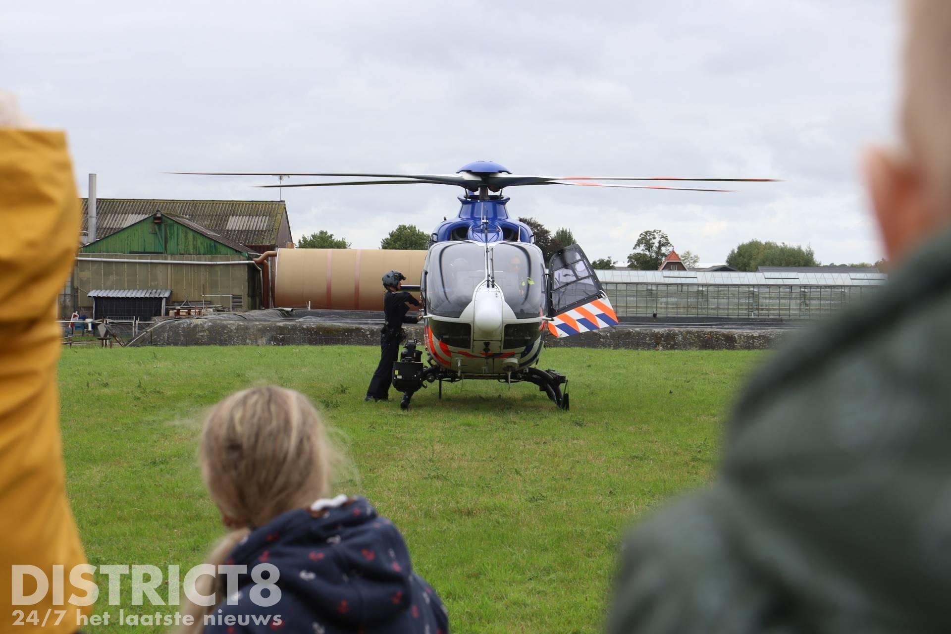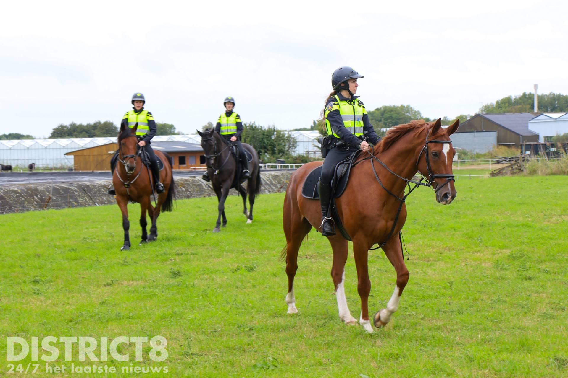 Het is er een drukte van belang. Onder andere de politiehelikopter en de hondenbrigade is aanwezig. De hondenbrigade doet ook een aantal demonstraties voor het publiek.