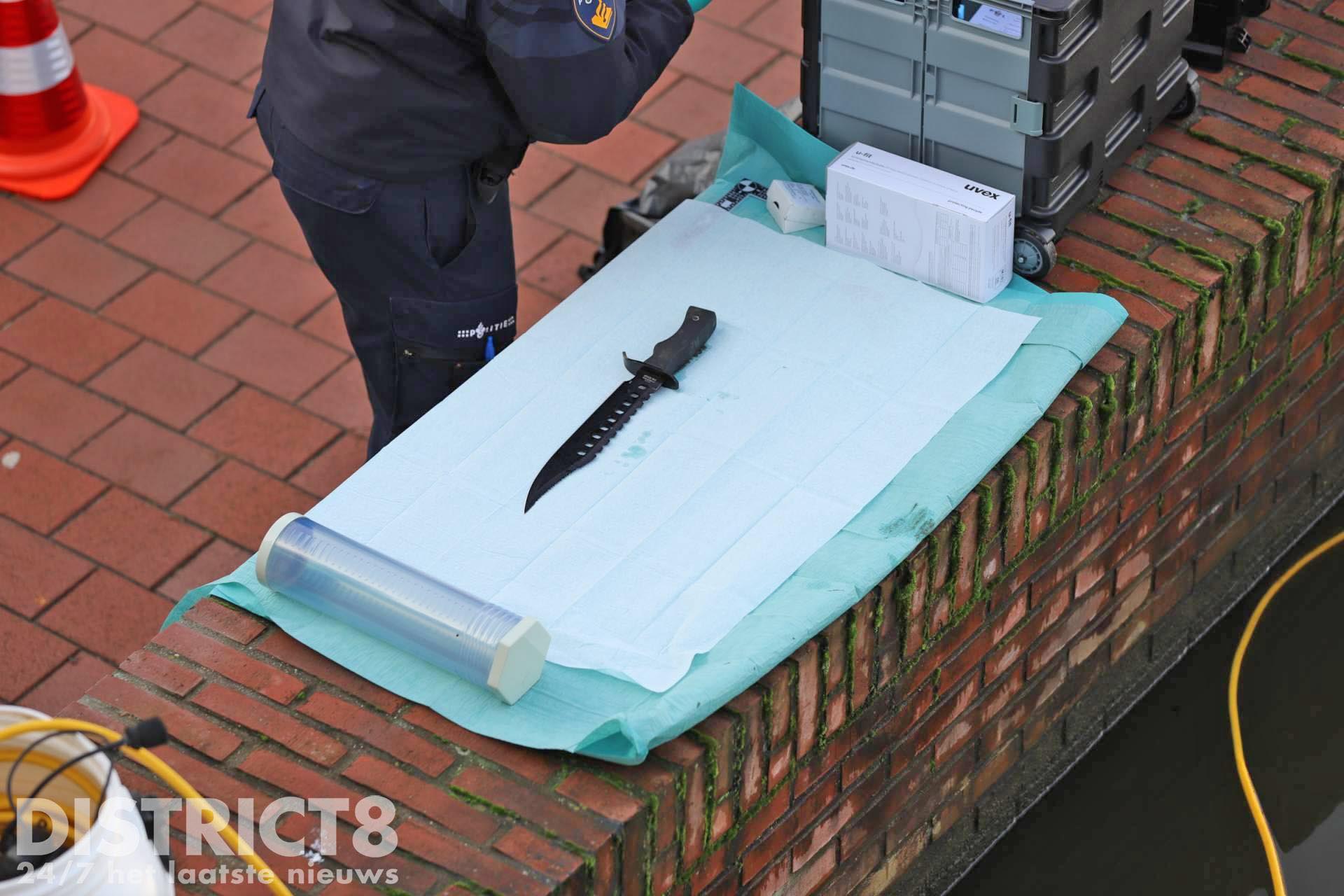 Na een korte zoektocht in het water hadden de duikers al snel beet: uit het water werd een zwarte machete gehaald. Deze is op de kant gelegd, direct is de Forensische Opsporing (FO) ter plaatse gevraagd. De medewerker van de FO heeft de machete veiliggesteld en eventuele sporen vastgelegd.