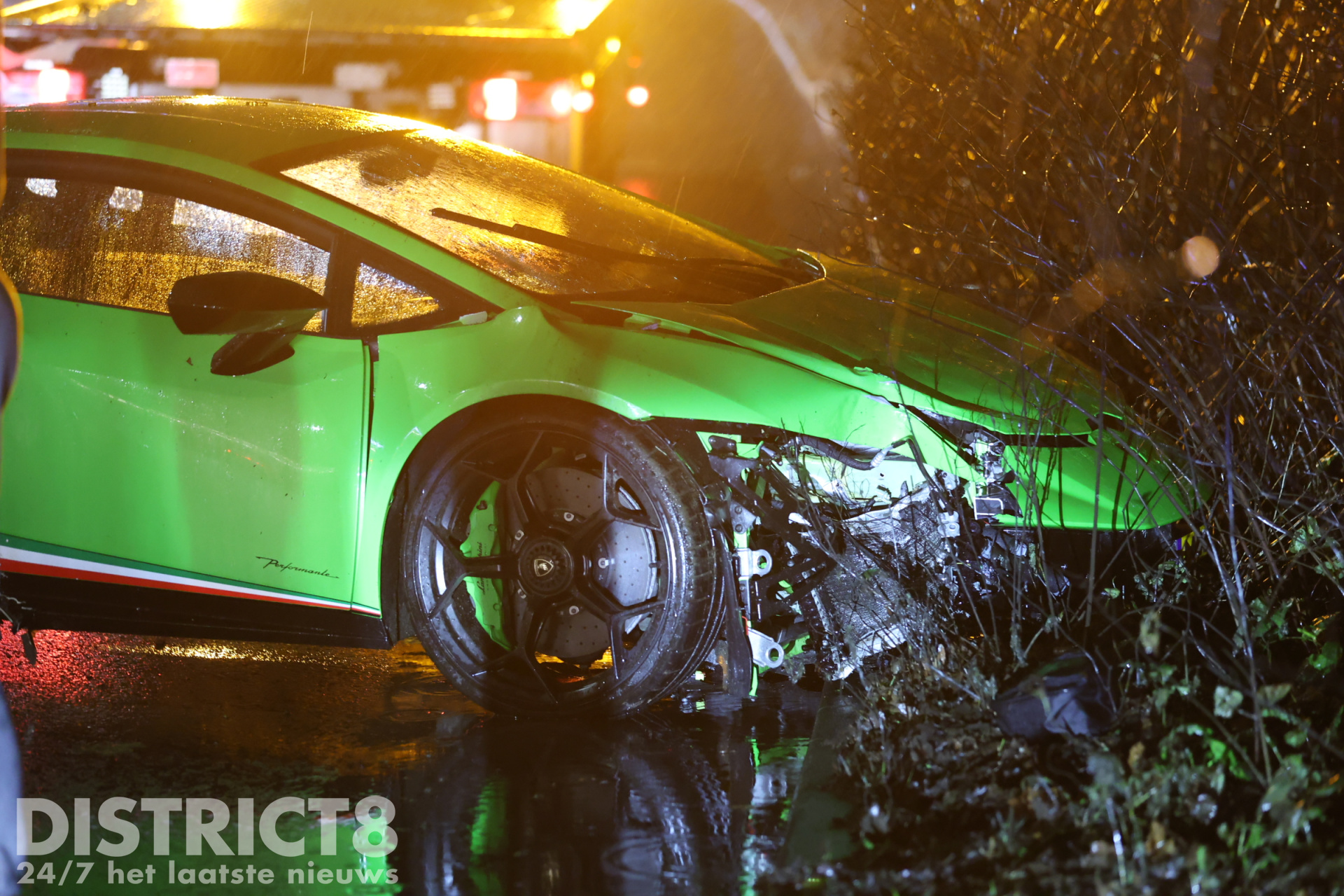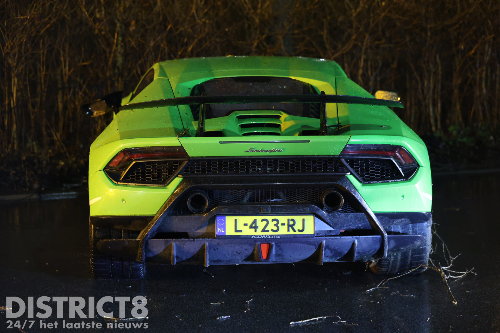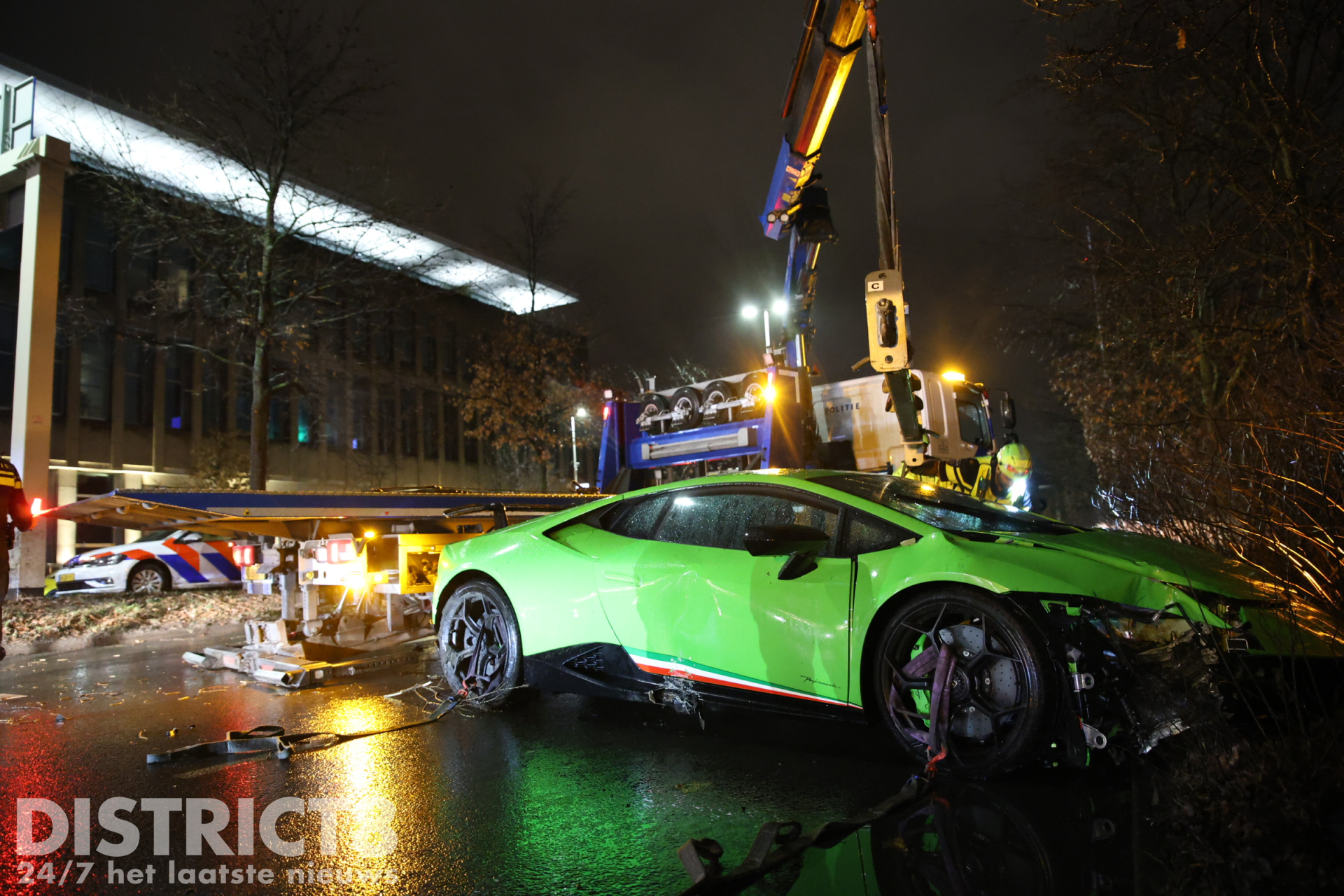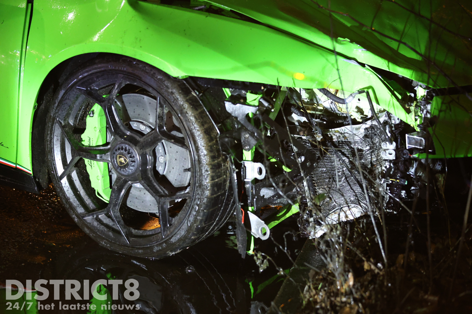 De dure Lamborghini met een nieuwwaarde van ruim drie ton raakte door het ongeval flink beschadigd. De bestuurder kwam er echter zonder kleerscheuren vanaf en raakte niet gewond.