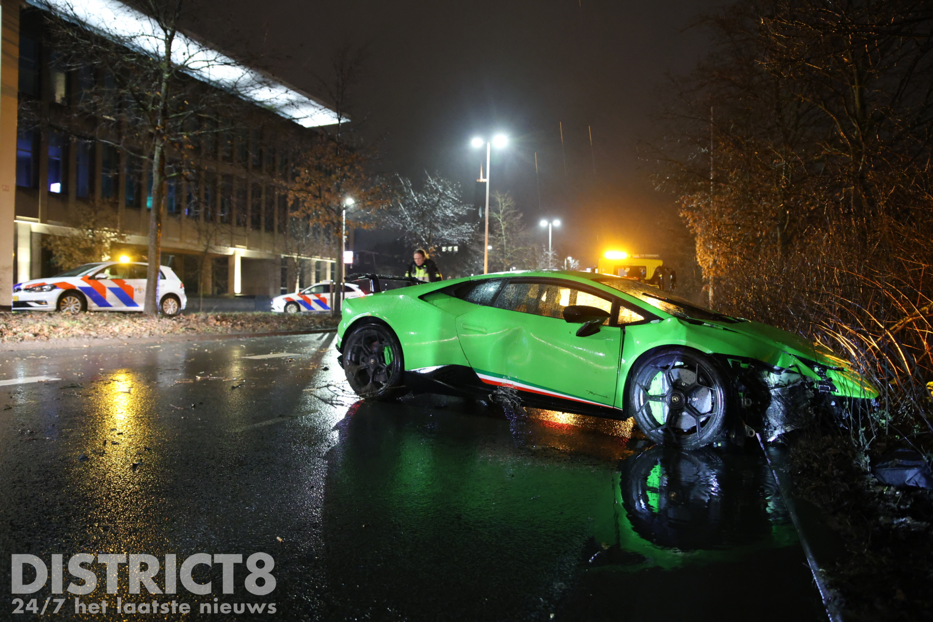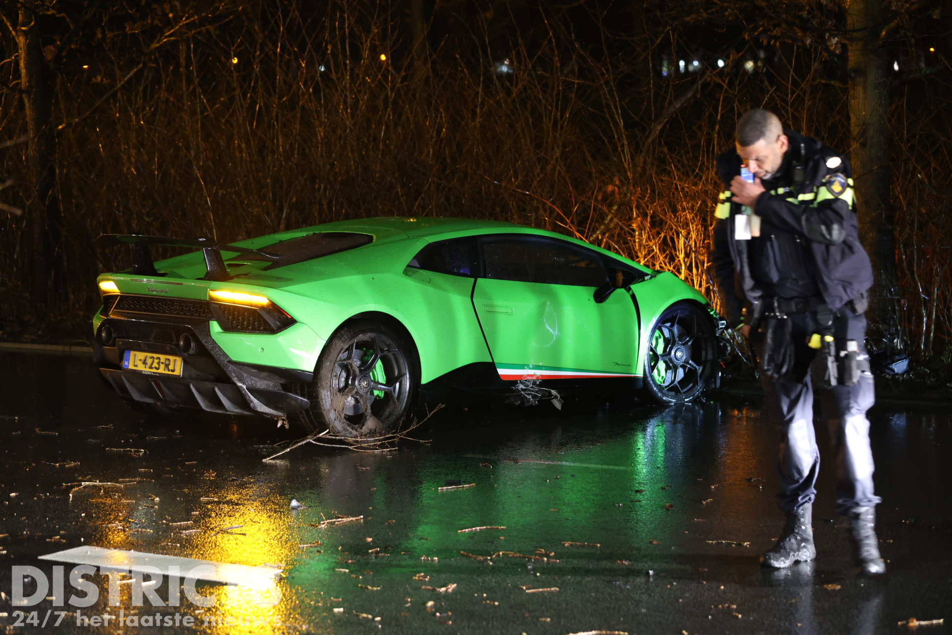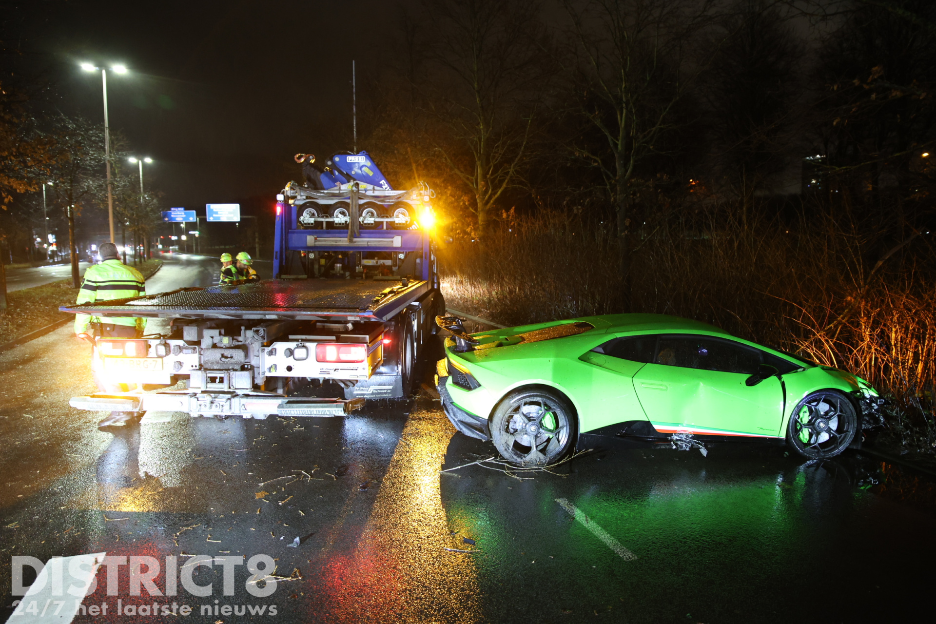 De dure Lamborghini met een nieuwwaarde van ruim drie ton raakte door het ongeval flink beschadigd. De bestuurder kwam er echter zonder kleerscheuren vanaf en raakte niet gewond.