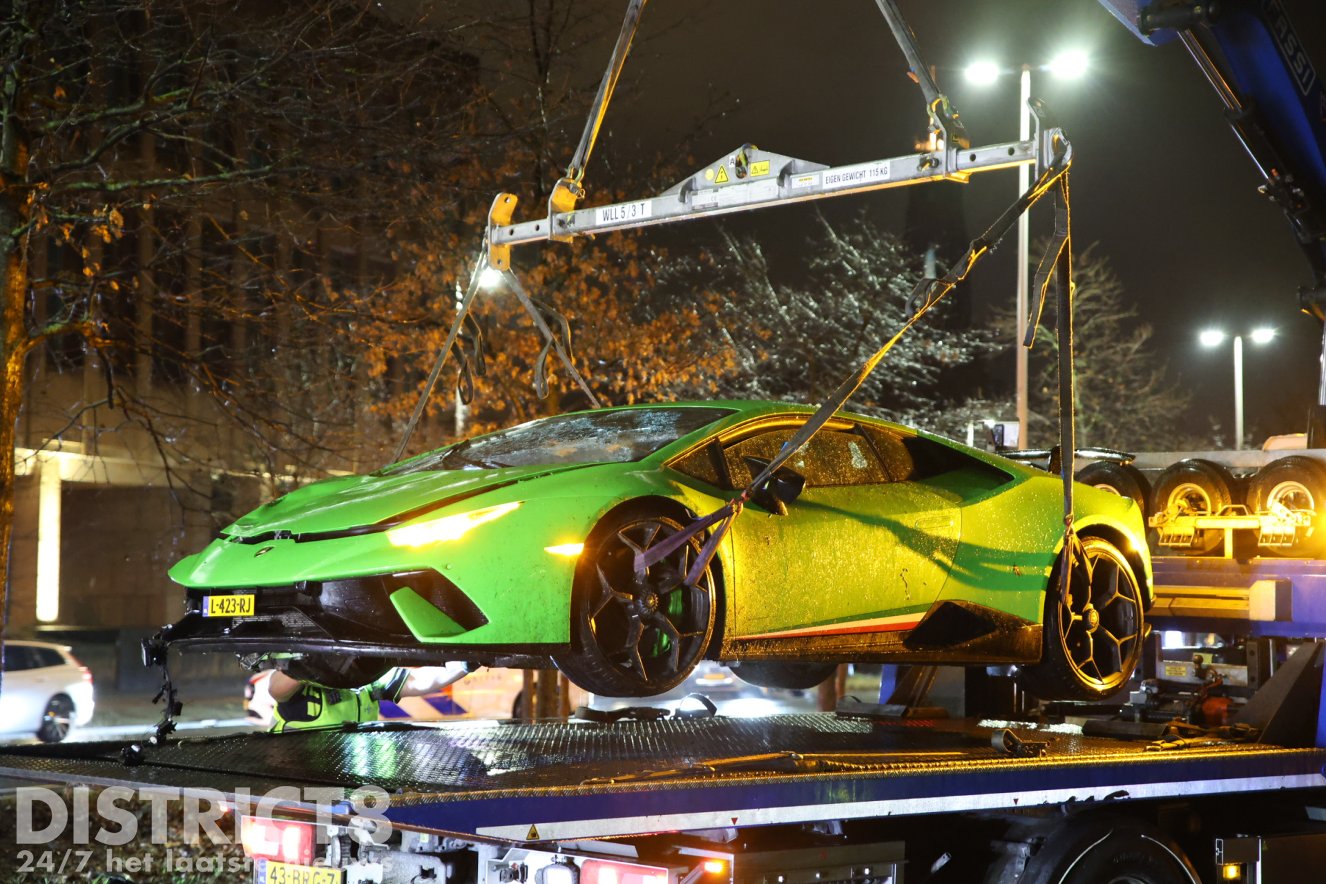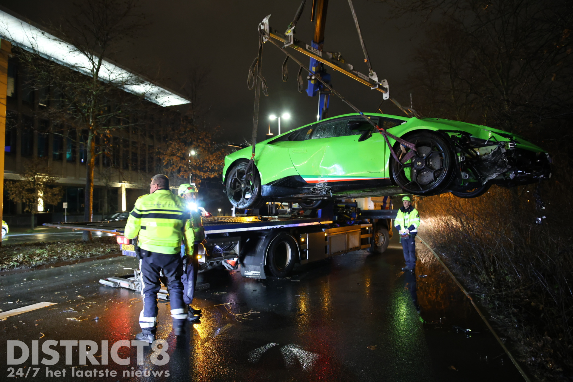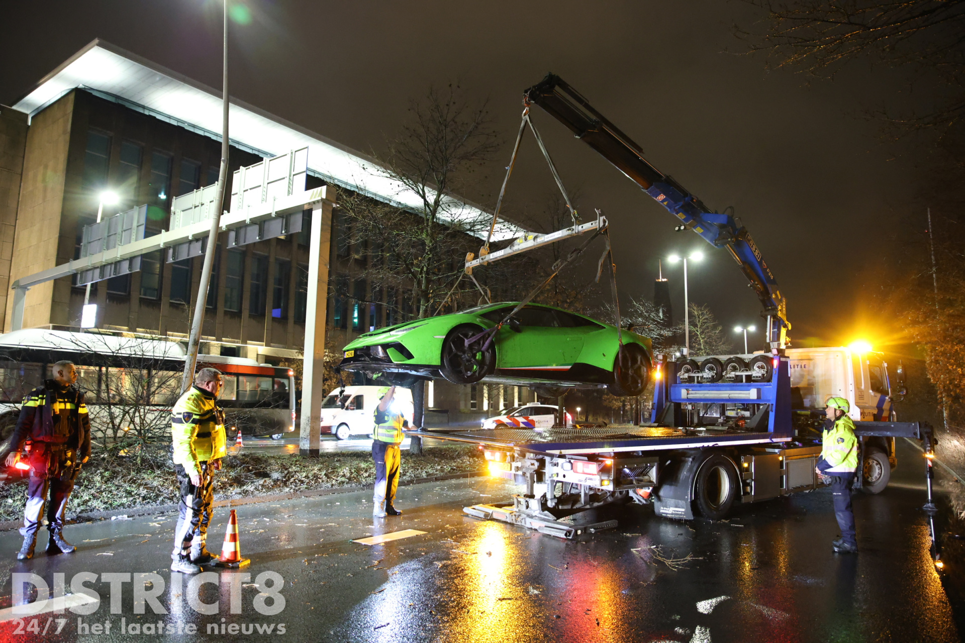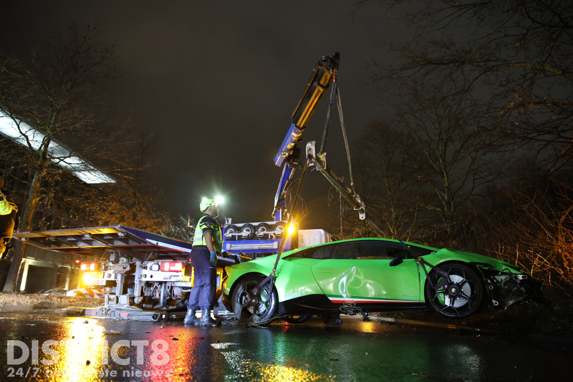 De dure Lamborghini met een nieuwwaarde van ruim drie ton raakte door het ongeval flink beschadigd. De bestuurder kwam er echter zonder kleerscheuren vanaf en raakte niet gewond.