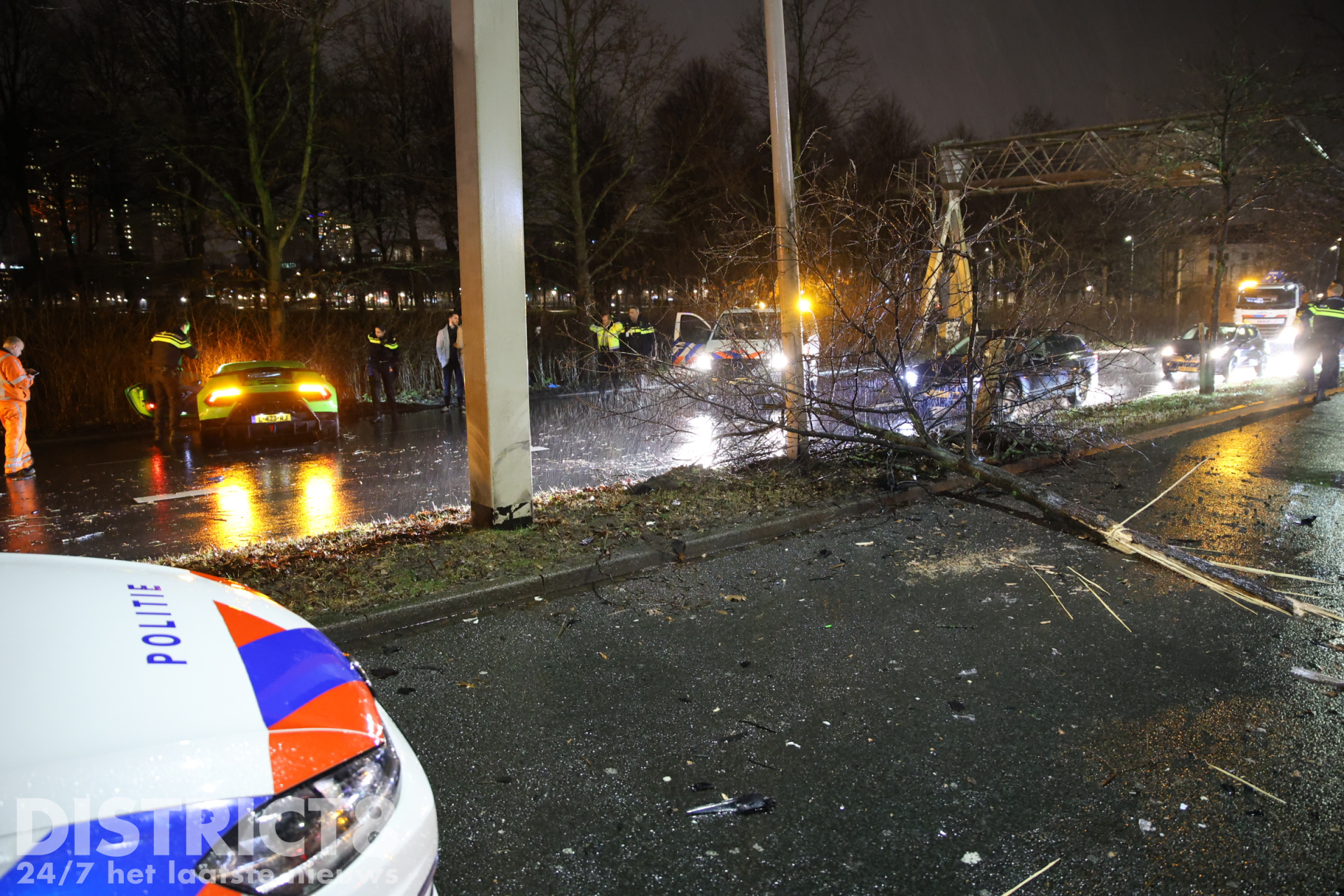 Dure Lamborghini botst tegen boom Zuid-Hollandlaan Den Haag