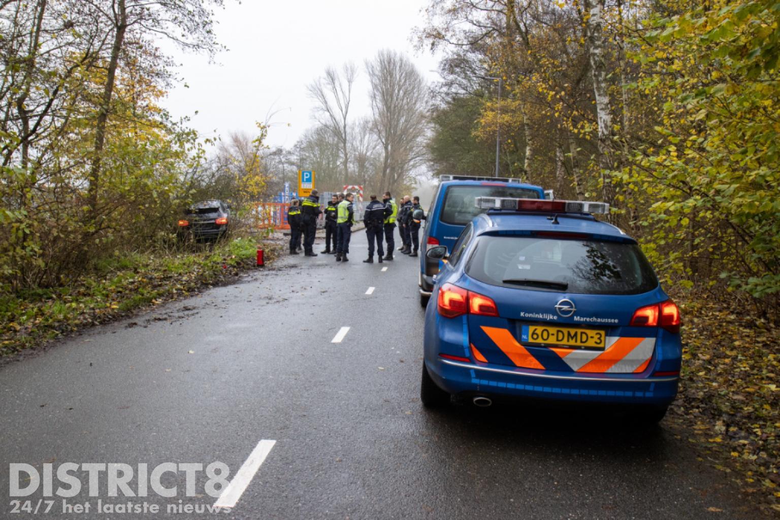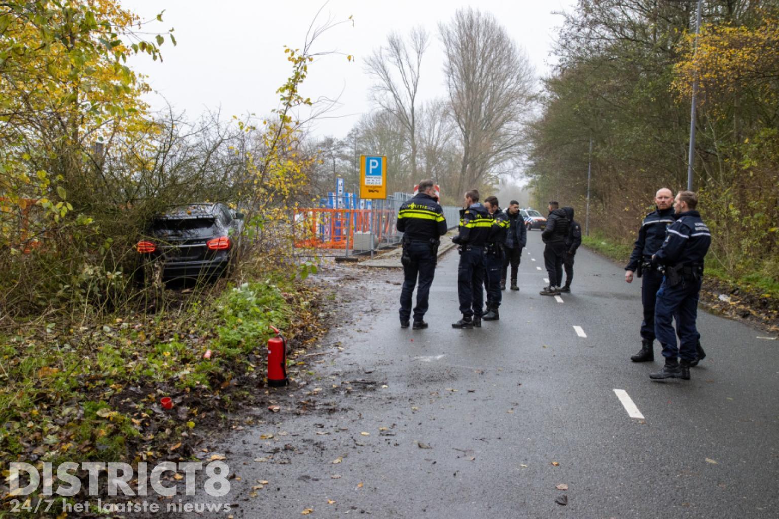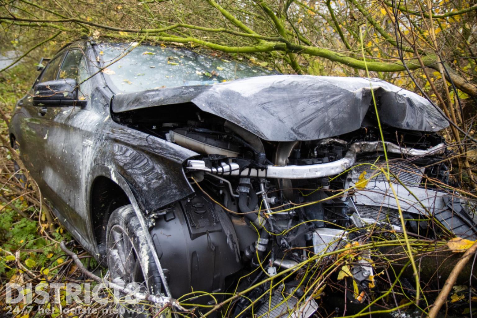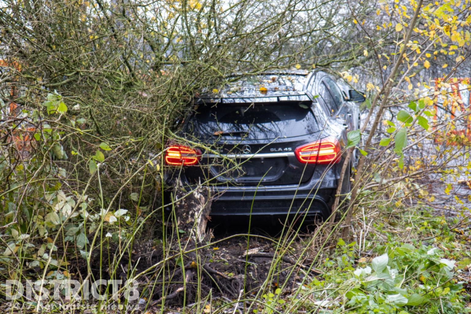 De auto is door een berger geborgen wat nog een flinke klus was omdat de auto midden in de bosjes stond. Nadat de bosjes met een kettingzaag waren weggehaald, kon de auto geborgen worden.