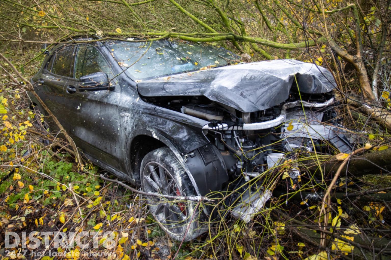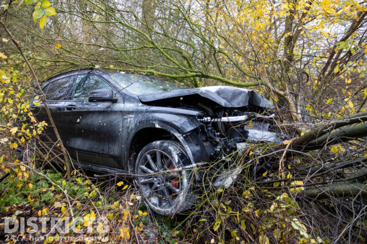 Rotterdam – Een dure mercedes is zaterdagochtend zwaar beschadigd geraakt na een eenzijdig ongeval op de Bovendijk in Rotterdam. De Mercedes reed op een rechte weg toen hij de macht over het stuur verloor en de bosjes in reed. Hierbij nam hij enkele kleine boompjes mee en een dikke boomstam.