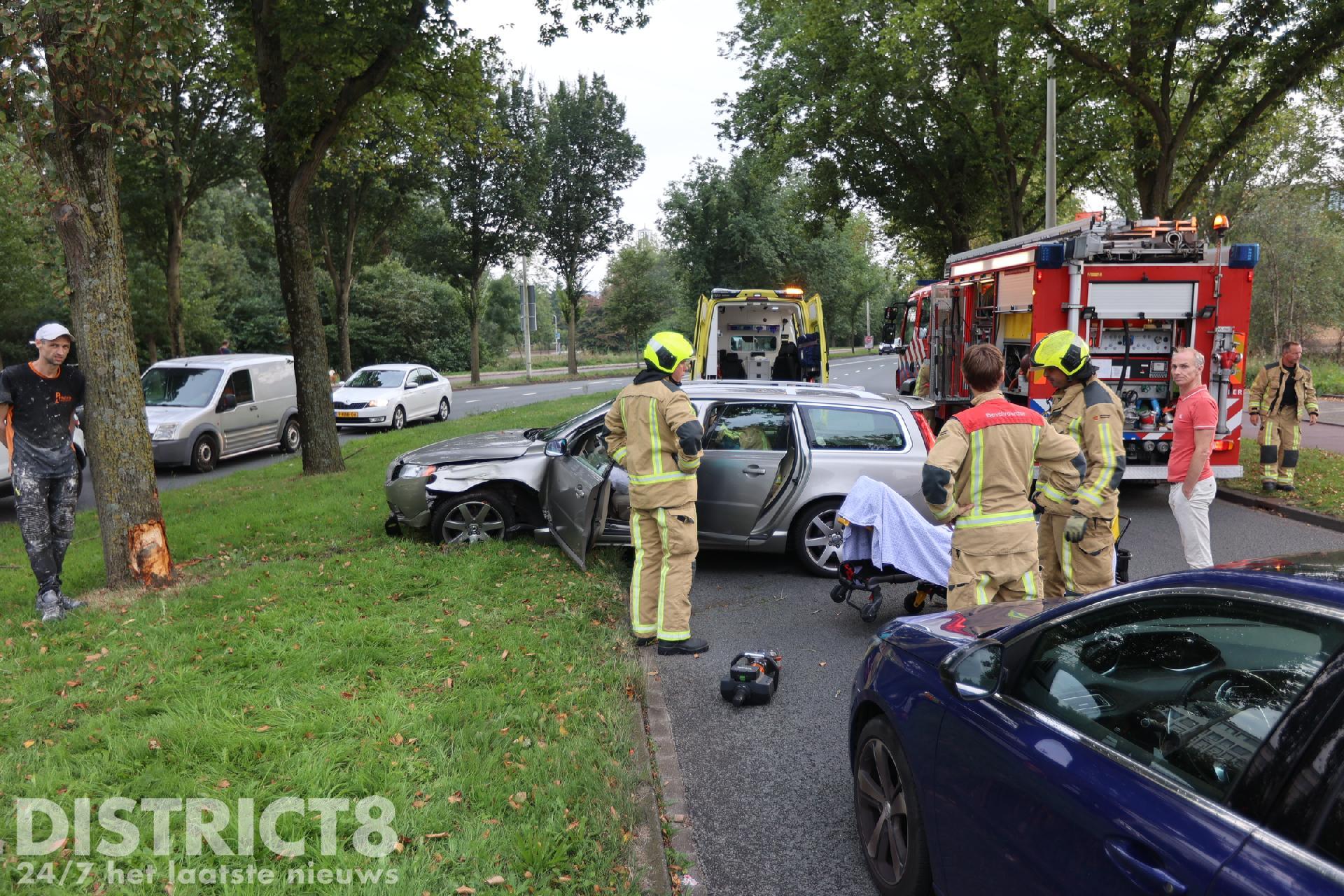 Eenzijdig auto-ongeluk; auto knalt tegen boom President Kennedylaan Den Haag