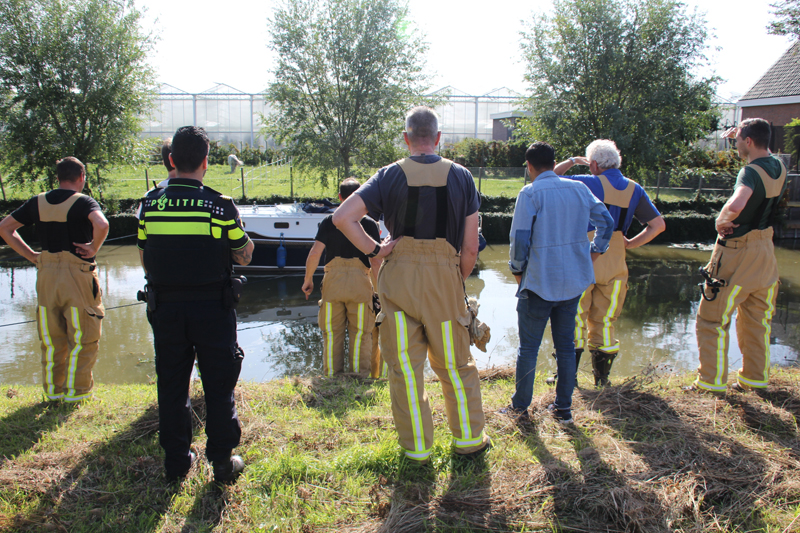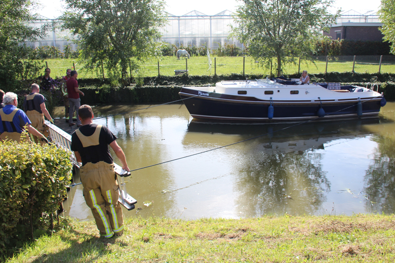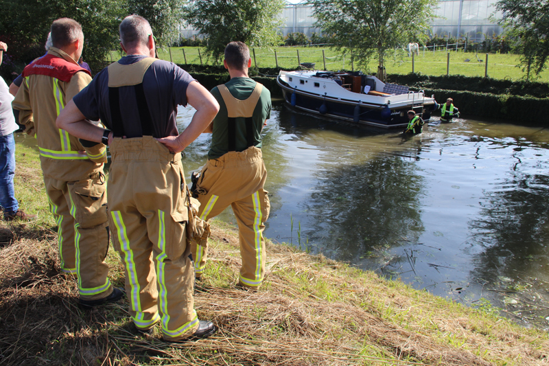 De brandweer is ter plaatse gekomen en heeft er voor gezorgd dat een vrouw die nog aan boord was, van boord kon gaan. WestlandInfra constateerde dat het ging om een kabel waar geen stroom meer op staat. De brandweer is inmiddels druk bezig om de kabel los te krijgen uit de schroef van de boot.
