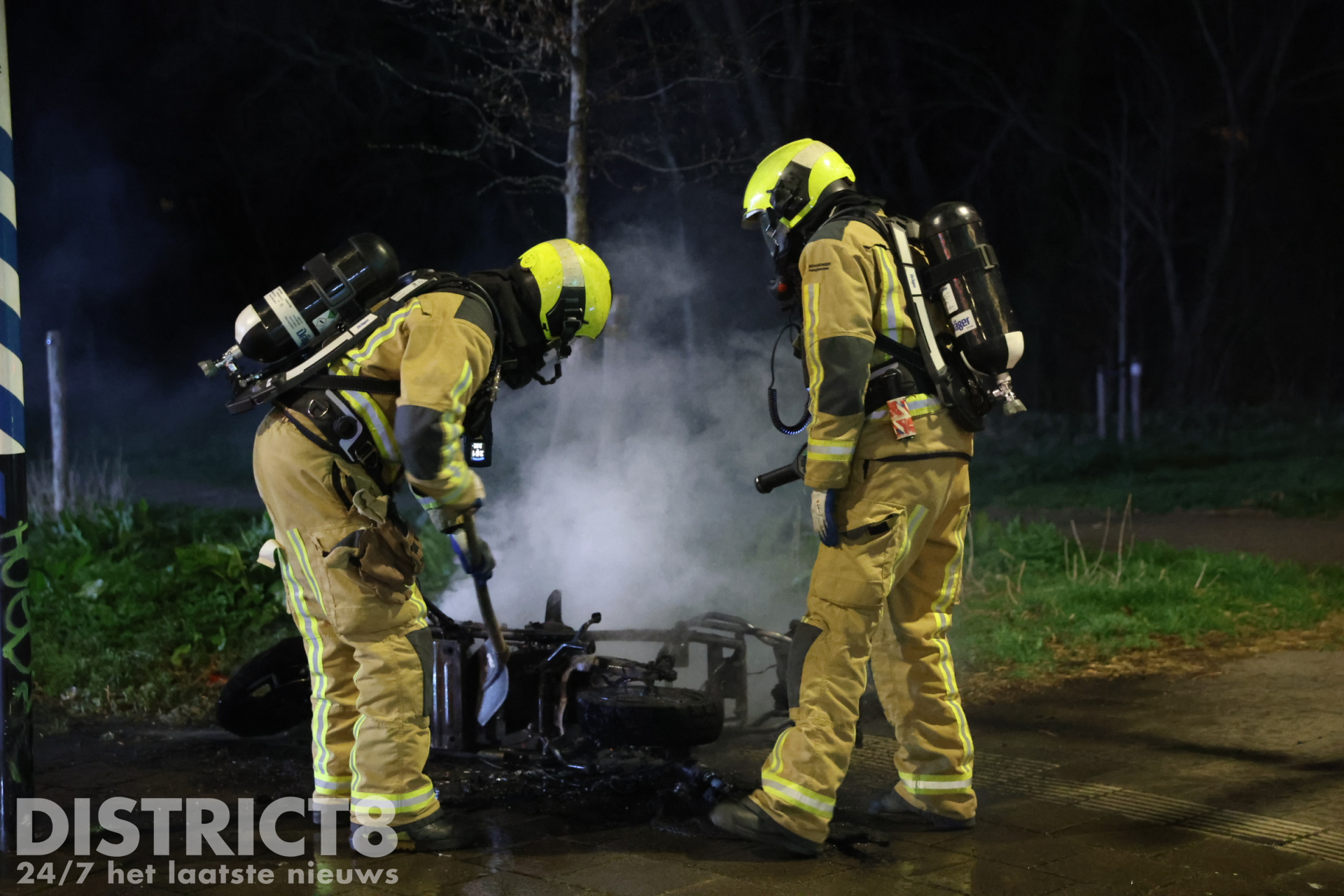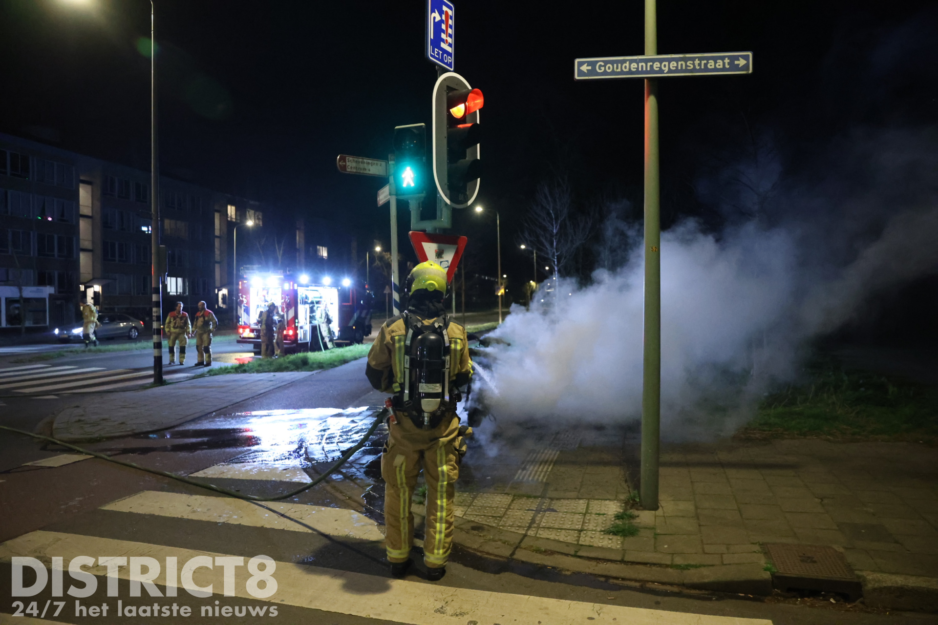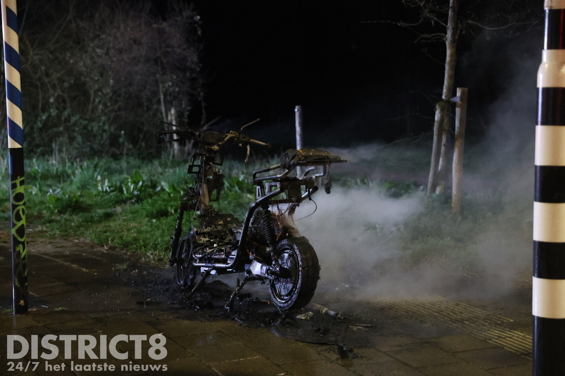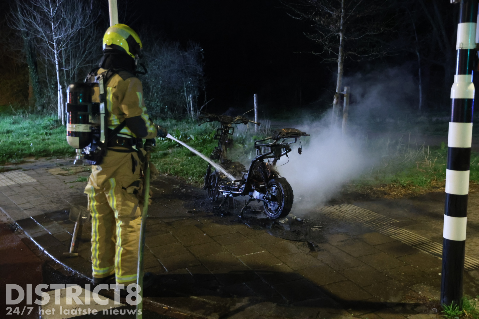 Den Haag – In de nacht van zaterdag op zondag 23 maart is een elektrische scooter in brand gestoken op de kruising van de Segbroeklaan en de Goudenregenstraat in Den Haag. De scooter ging volledig in vlammen op, vermoedelijk door opzet.