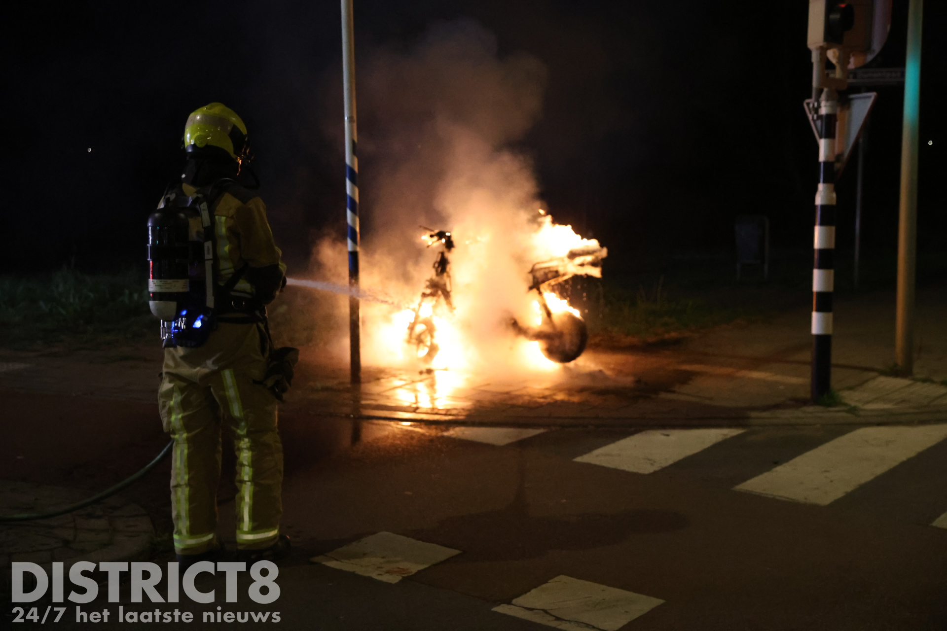 Even na één uur s nachts werd de brandweer gealarmeerd. De melder zag flinke vlammen aan de zijkant van de kruising en realiseerde zich al snel dat het om een scooter ging. De politie en brandweer werden onmiddellijk opgeroepen en snel ter plaatse gestuurd.
