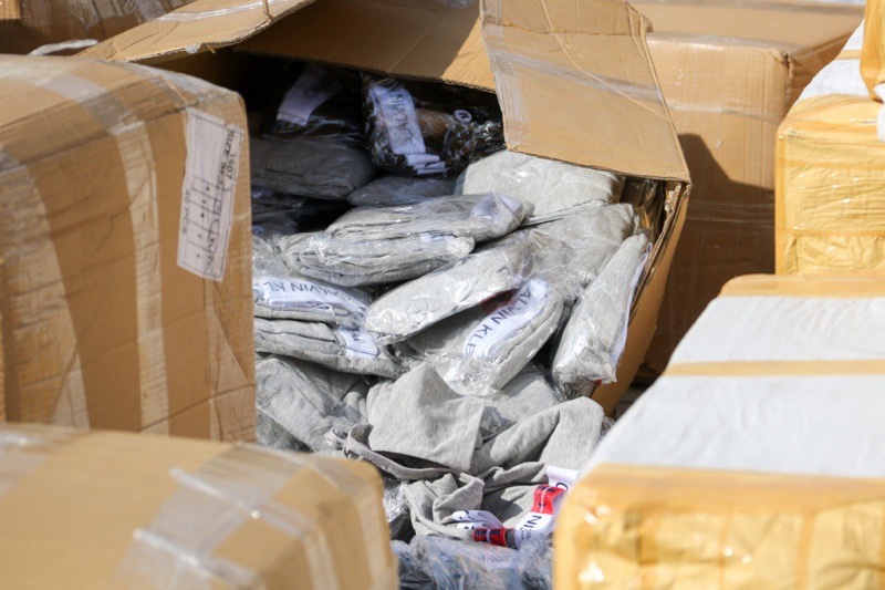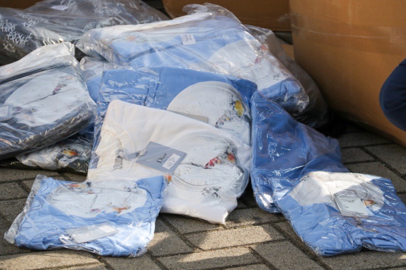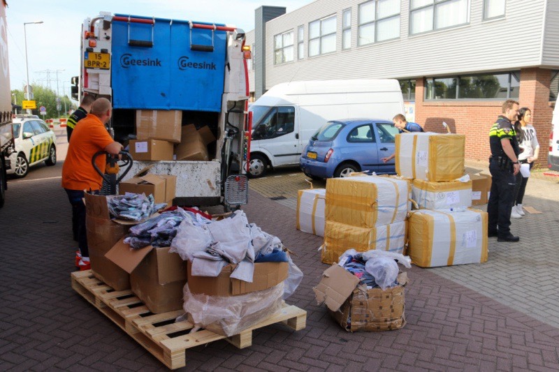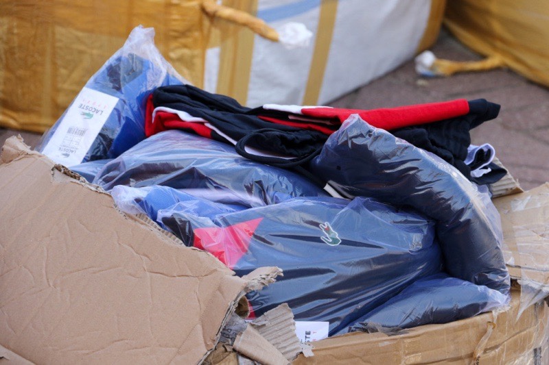 Van ondergoed tot jassen van t-shirts tot kinderkleding; alle maten en merken waren aanwezig. Na de telling werd alles in de aanwezige vuilniswagens gegooid en afgevoerd voor vernietiging.
