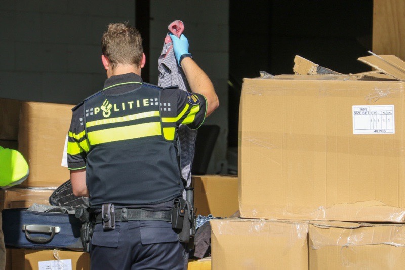 Schiedam – In een bedrijfspand aan de Fokkerstraat is donderdag een enorme partij namaak merkkleding aangetroffen.