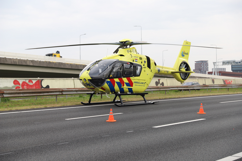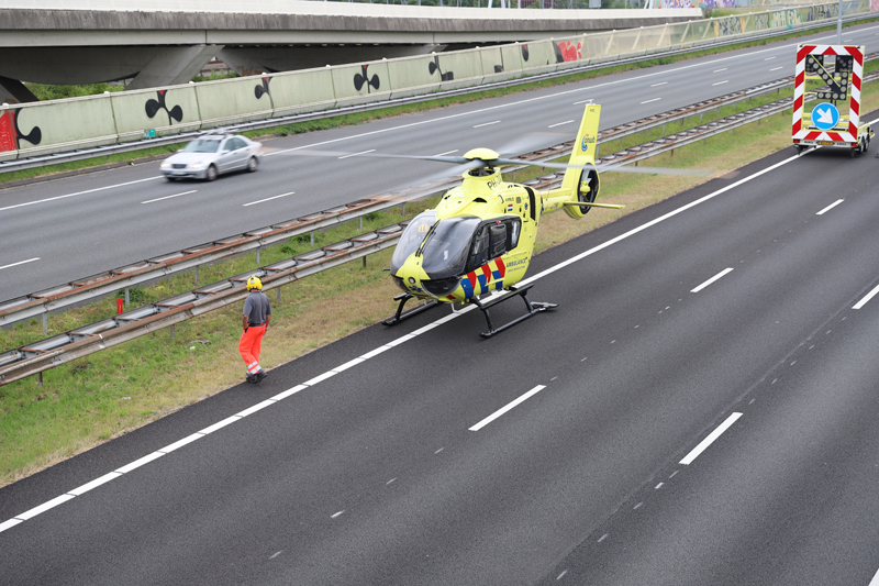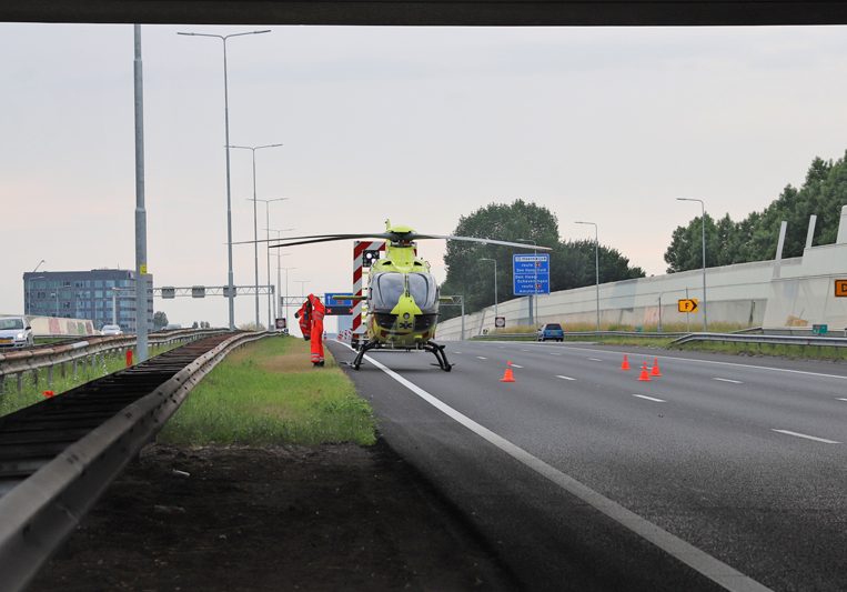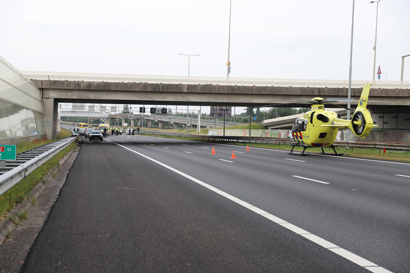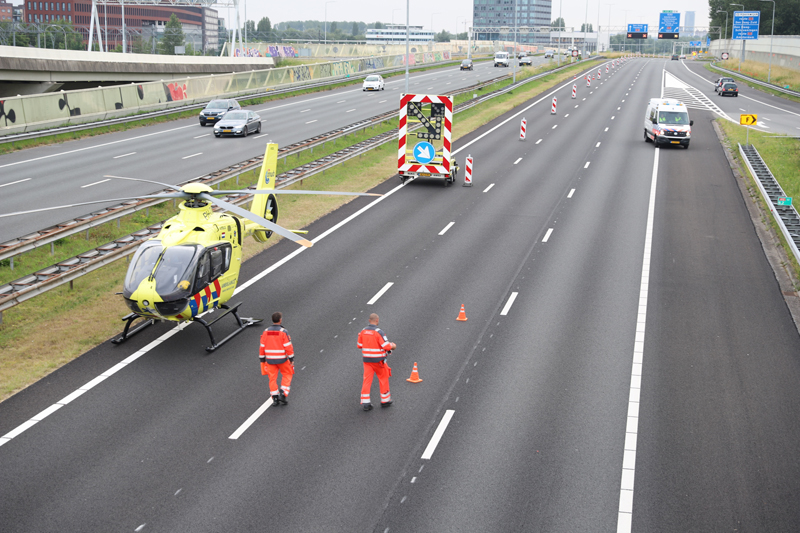 De A12 richting het Malieveld is volledig afgesloten. De traumahelikopter is op de snelweg geland.