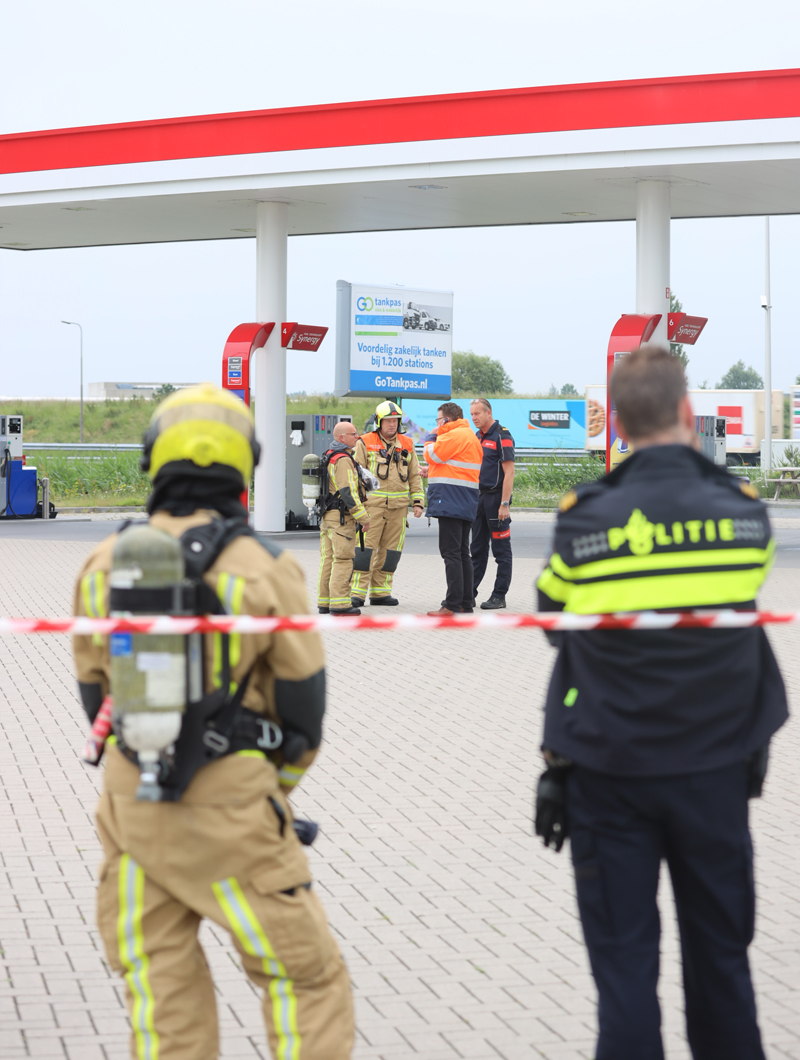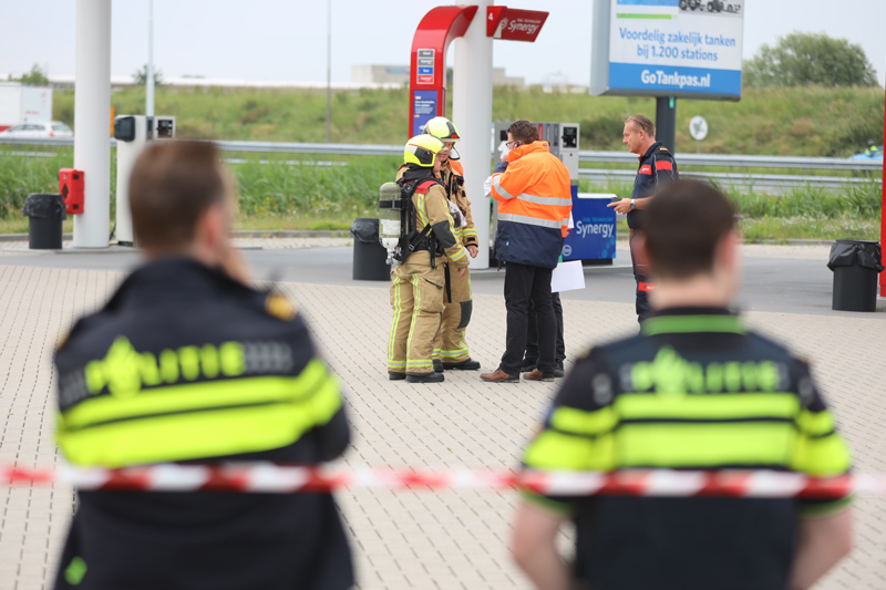 De brandweer, politie en Rijkswaterstaat kwamen met spoed ter plaatse. De politie sloot in overleg met rijkswaterstaat het tankstation af.