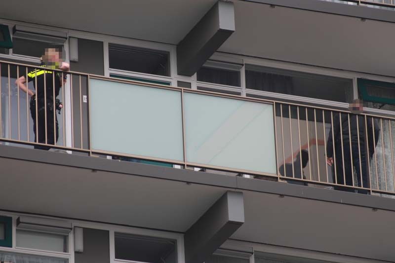 De verdachte had nog een gevangenisstraf open staan. De agenten gingen aan de deur, maar de verdachte verstopte zich gauw in de woning. De hulp van de brandweer werd ingeschakeld zodat de verdachte niet via het balkon kon vluchten.